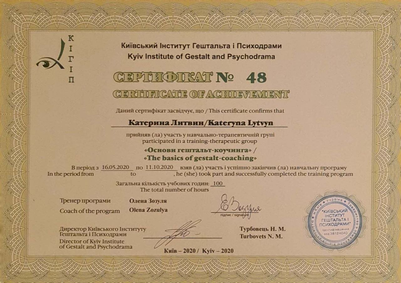 Киевский институт гештальта и психодрамы – гештальт-коучинг (2020 г.)