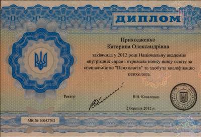2008-2012 гг. Киевская Национальная Академия Внутренних Дел, специальность: «Психология», квалификация специалист.