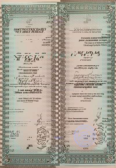 2012 г. — «Детская психиатрическая пропедевтика» 100 часов теории и 20 часов практики (сертификат Секции детской и юношеской психотерапии УСП)