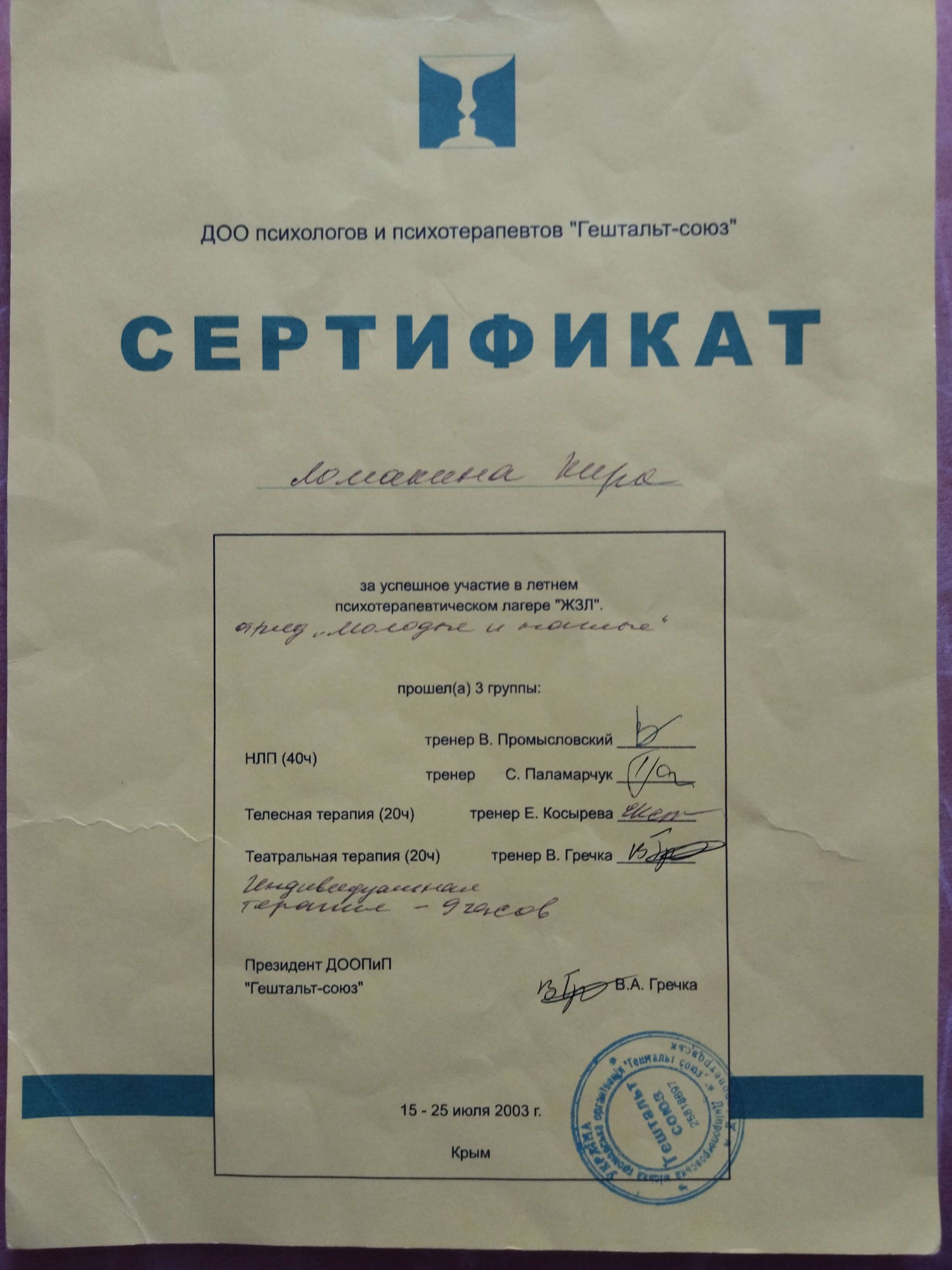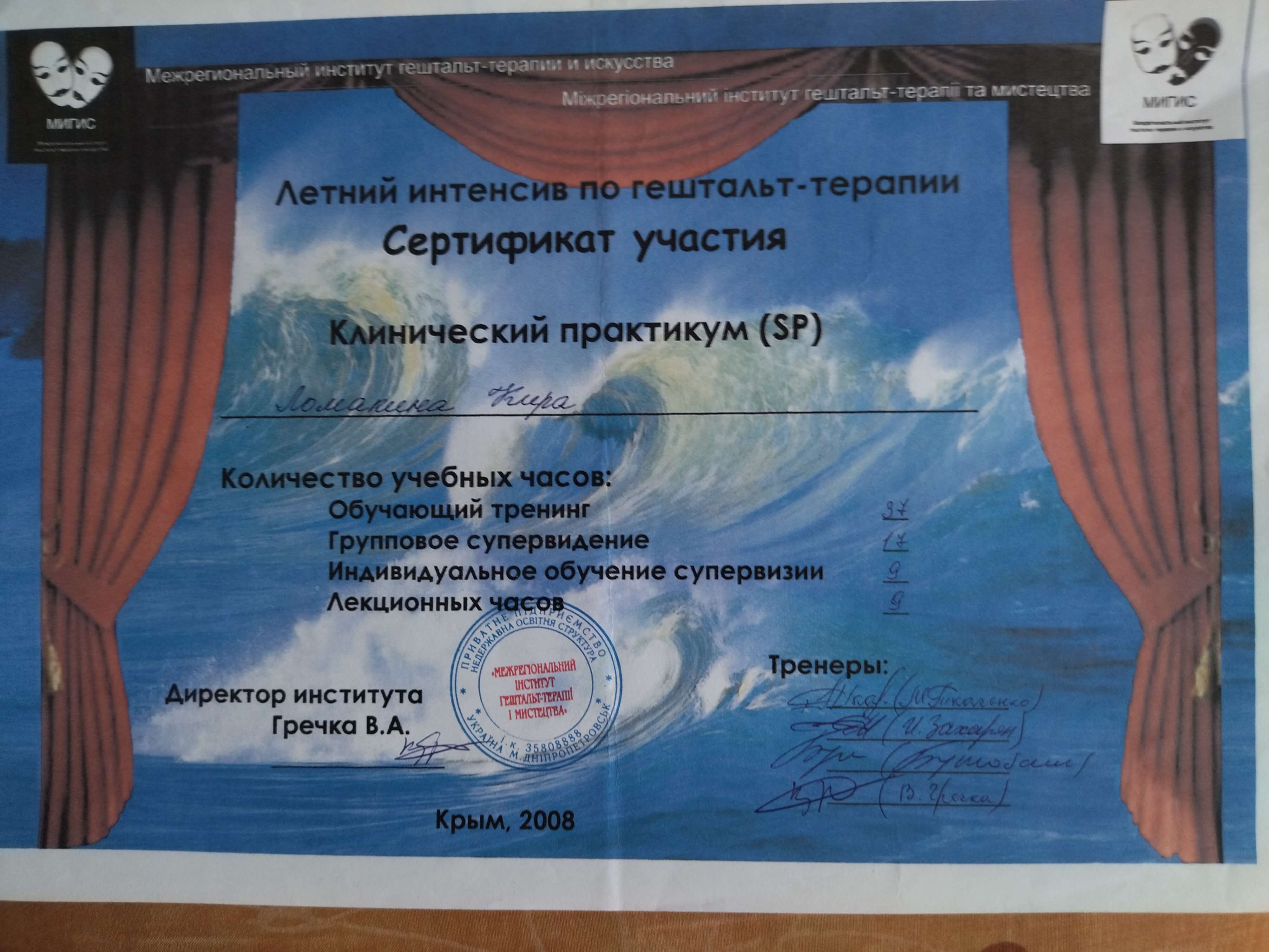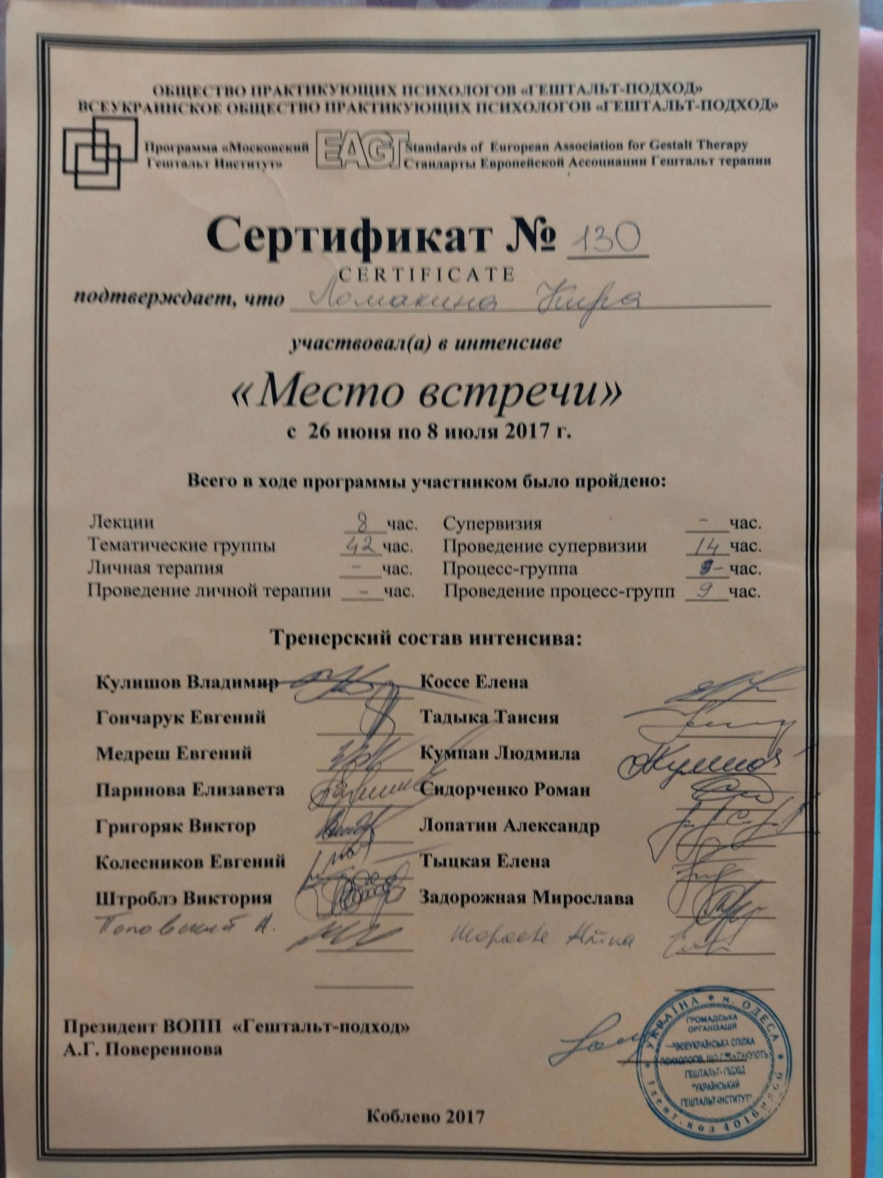 Московский институт гештальт терапии и искусства, гештальт терапевт 2007г.