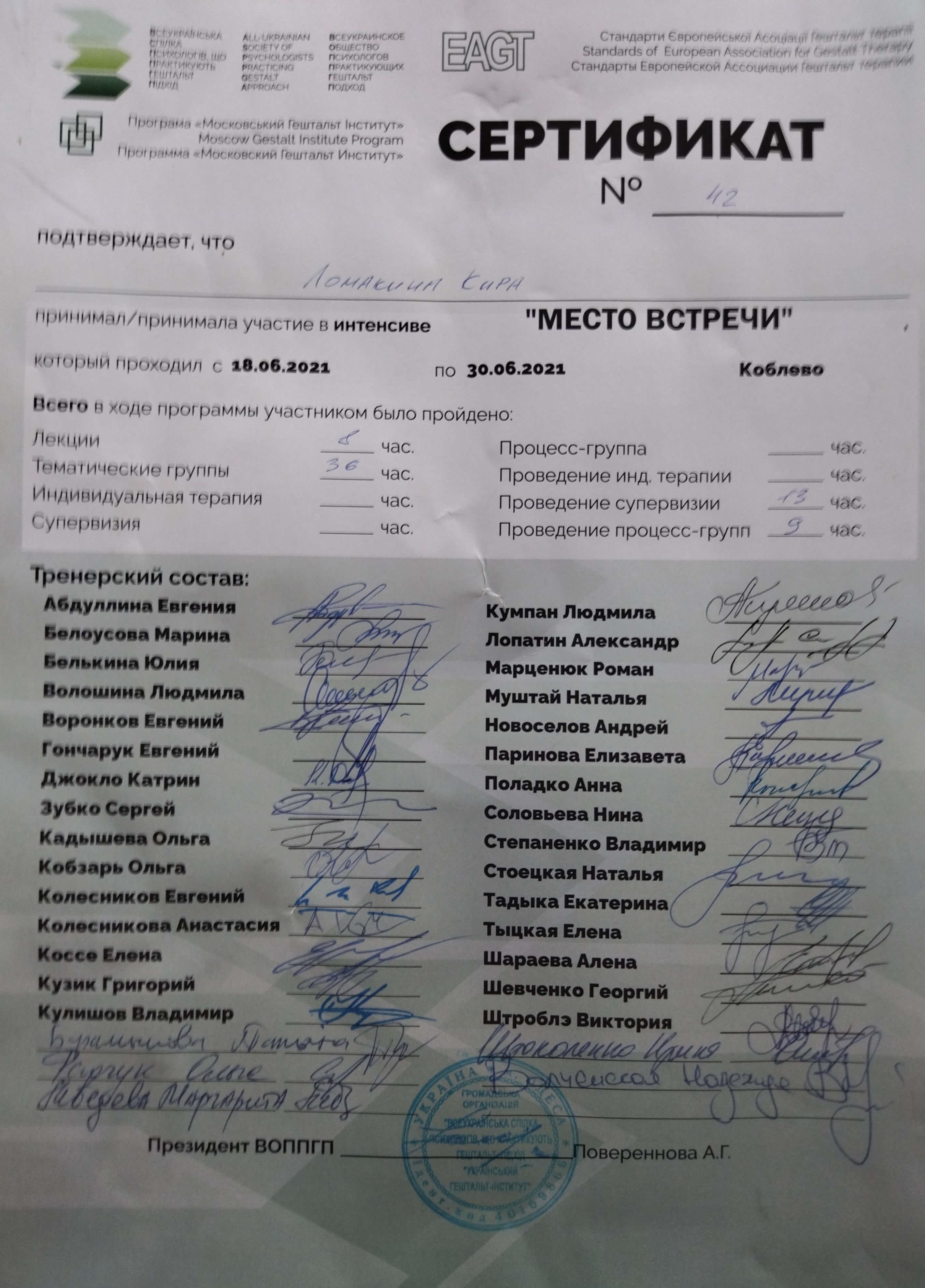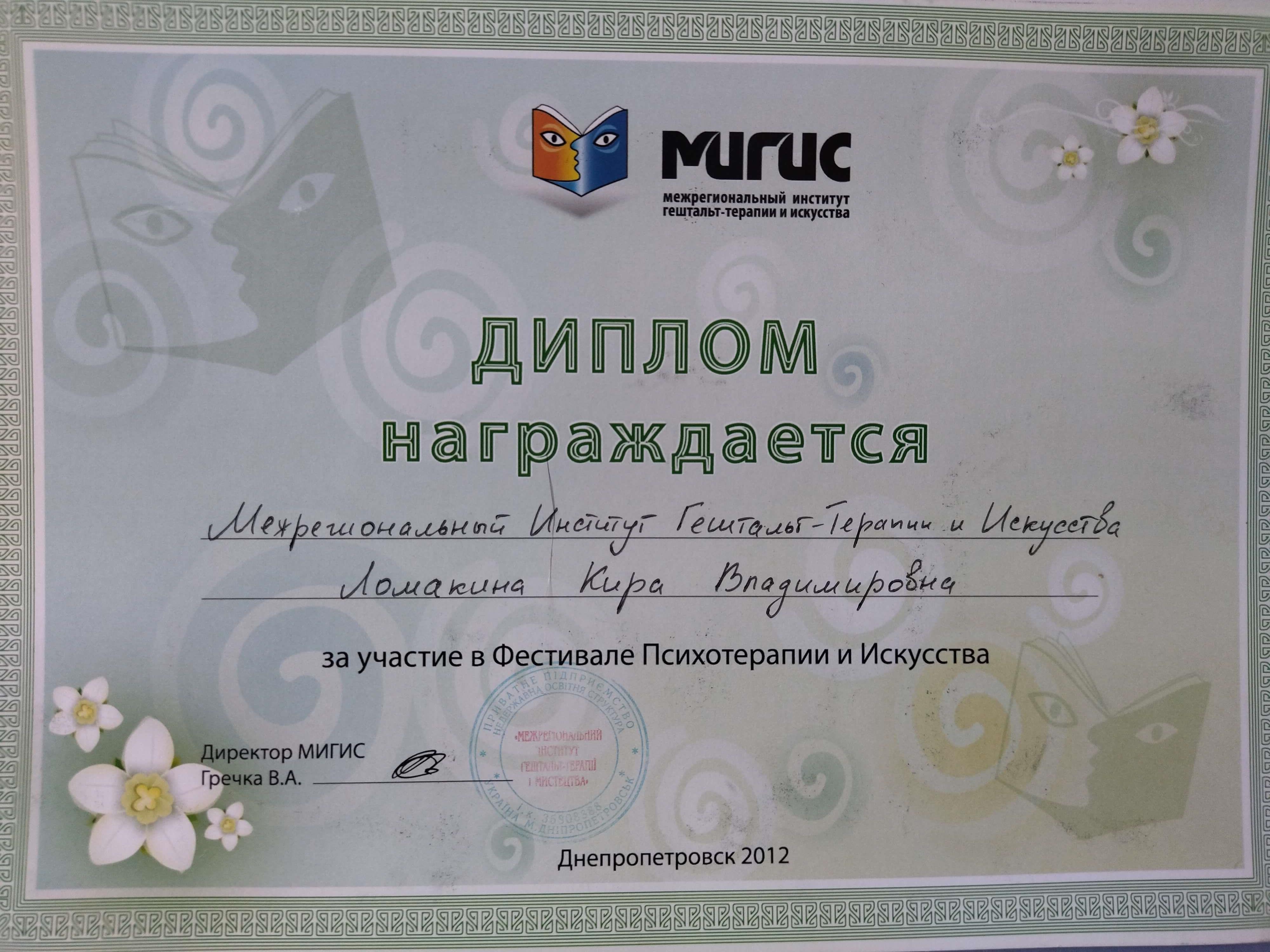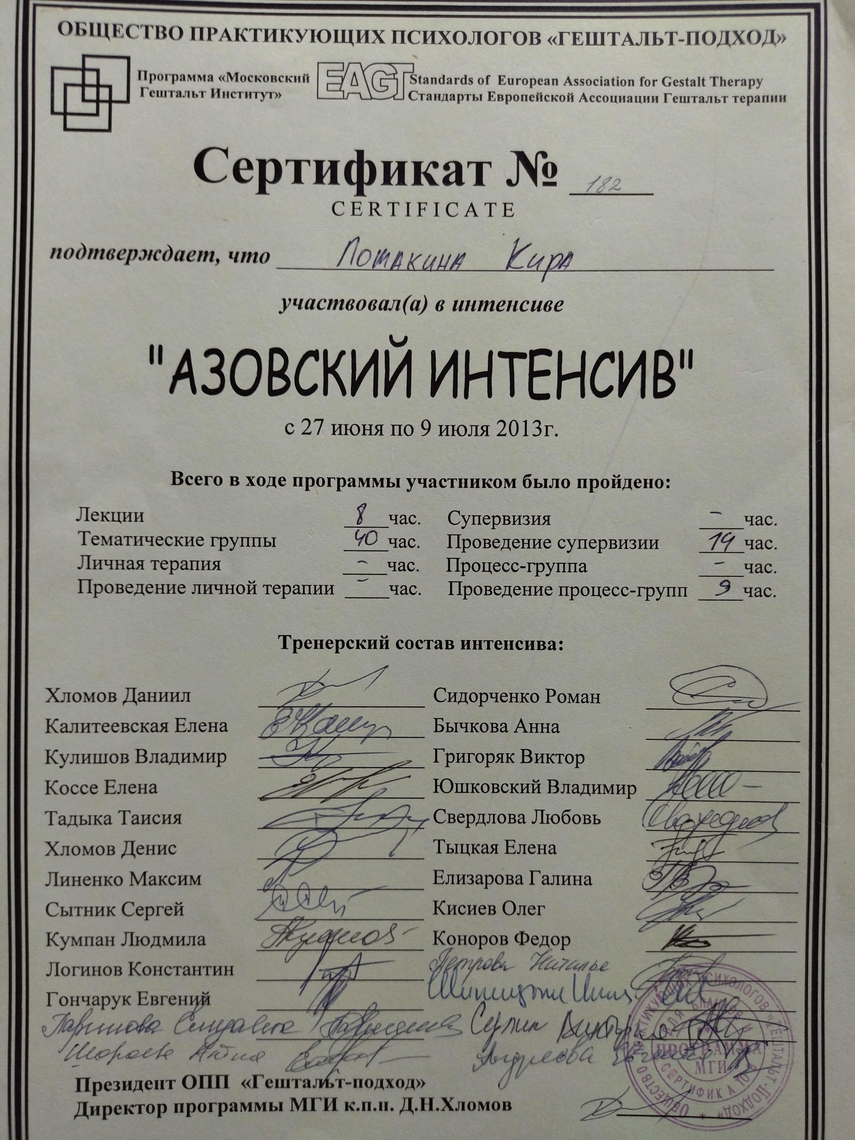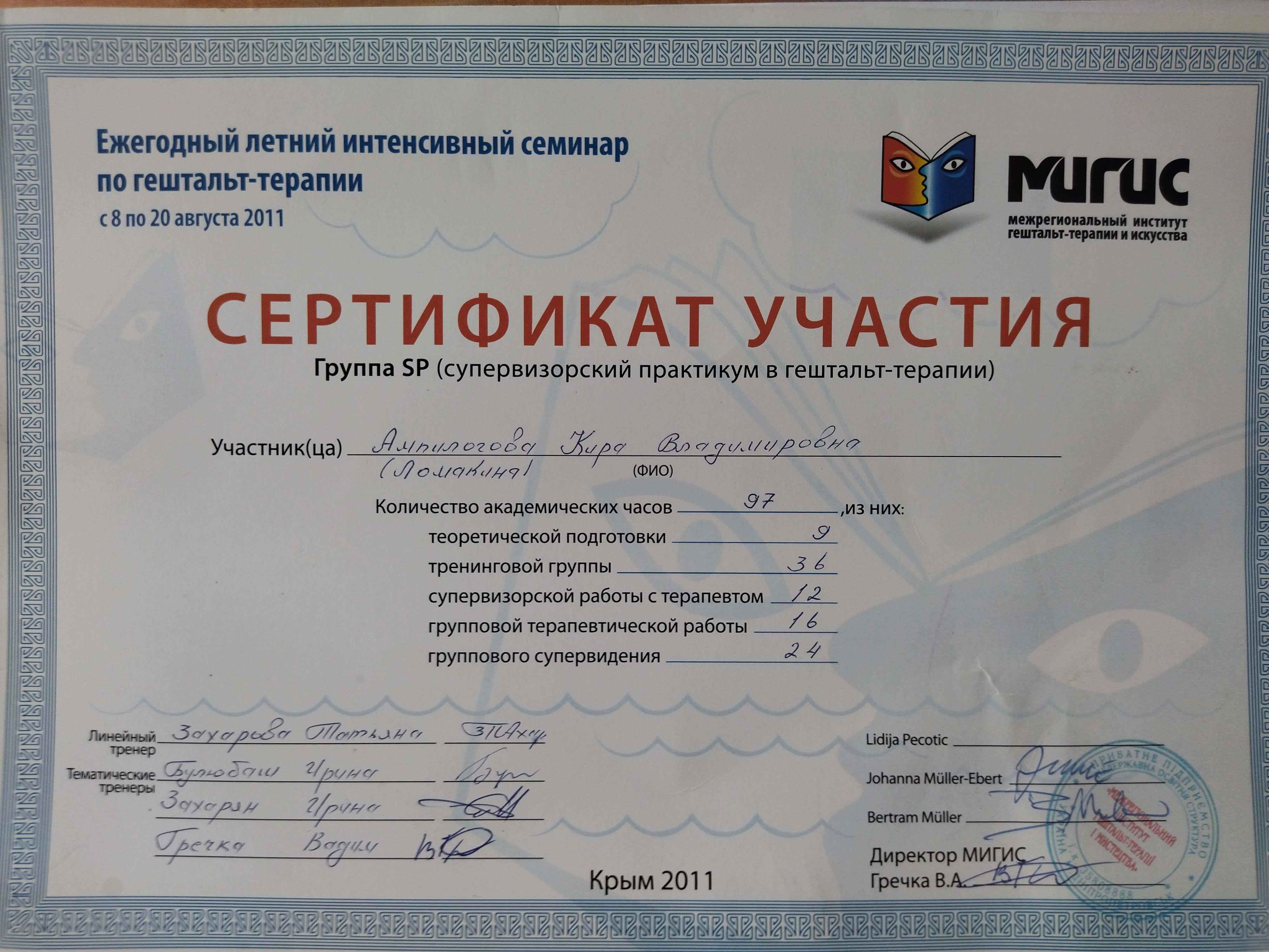 Московский институт гештальт терапии и искусства, гештальт терапевт 2007г.