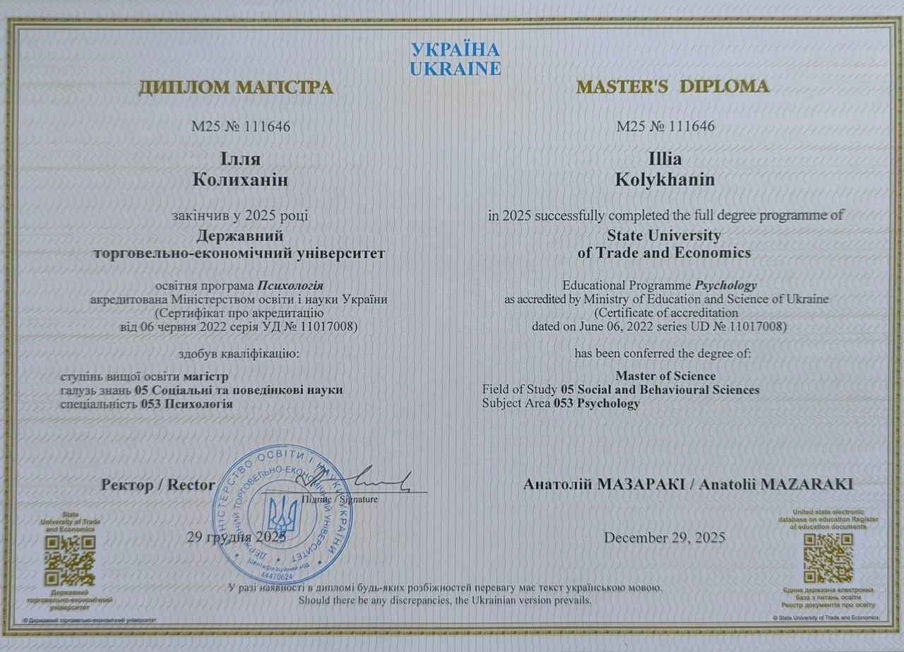 Магистр психологии. Профессиональная подготовка в гештальт-подходе, регулярное участие в супервидениях и профессиональных группах.