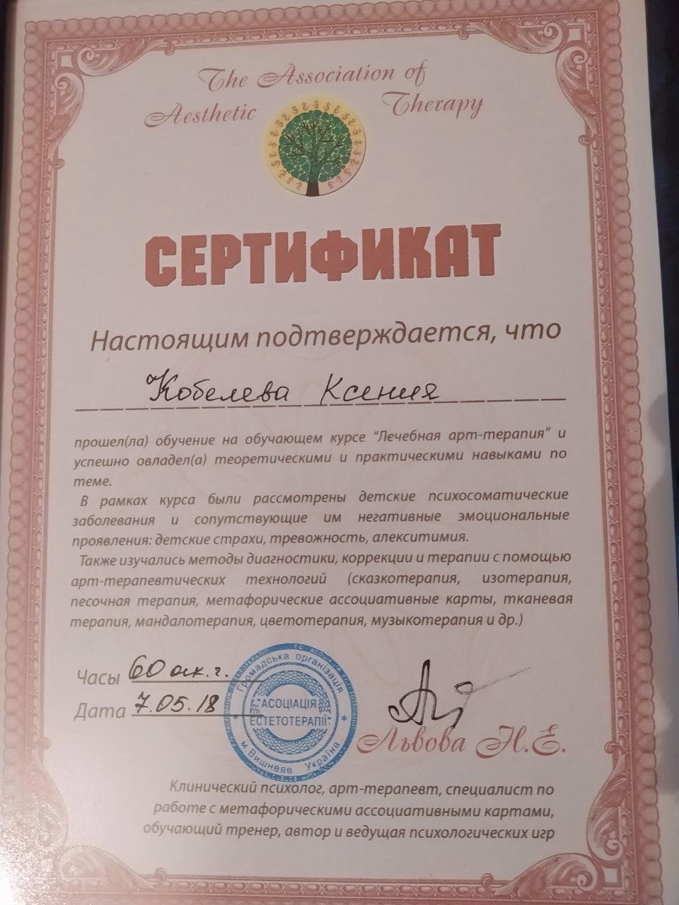 - курс Лечебная Арт-терапия 2018 год