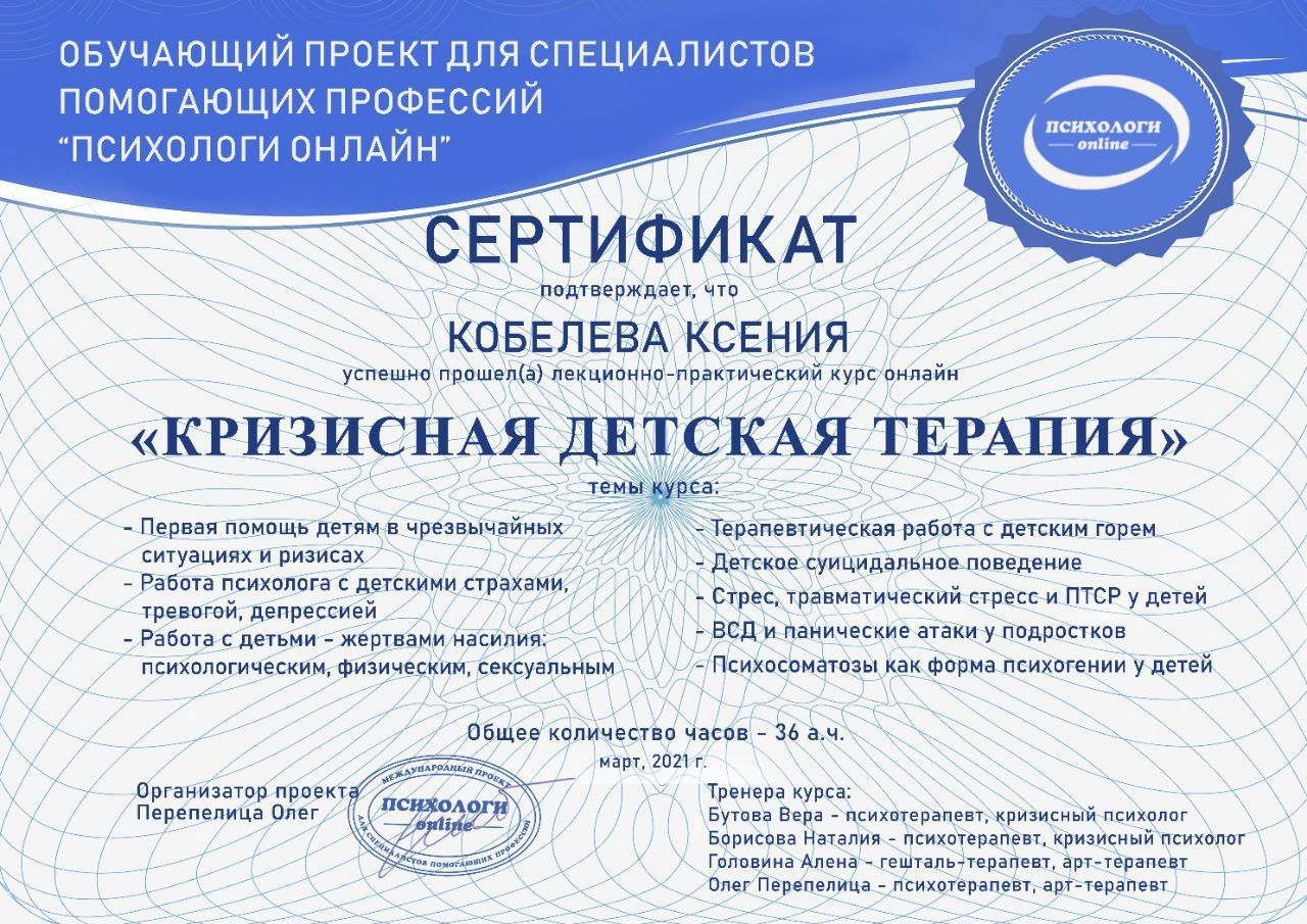 - курс Кризисная детская терапия, 2021 год
