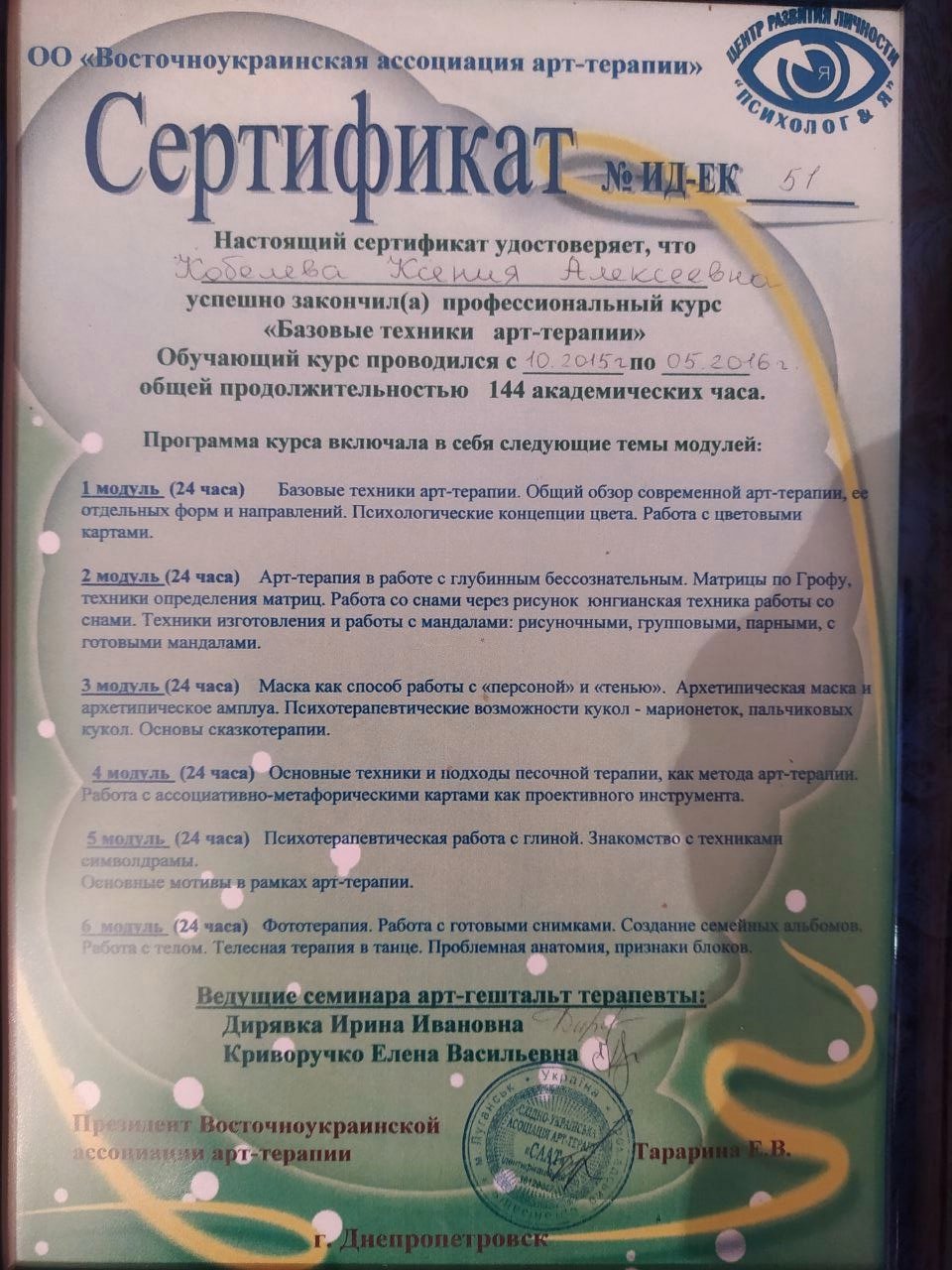 - курс Базовые техники Арт-терапии 2015-2016 год