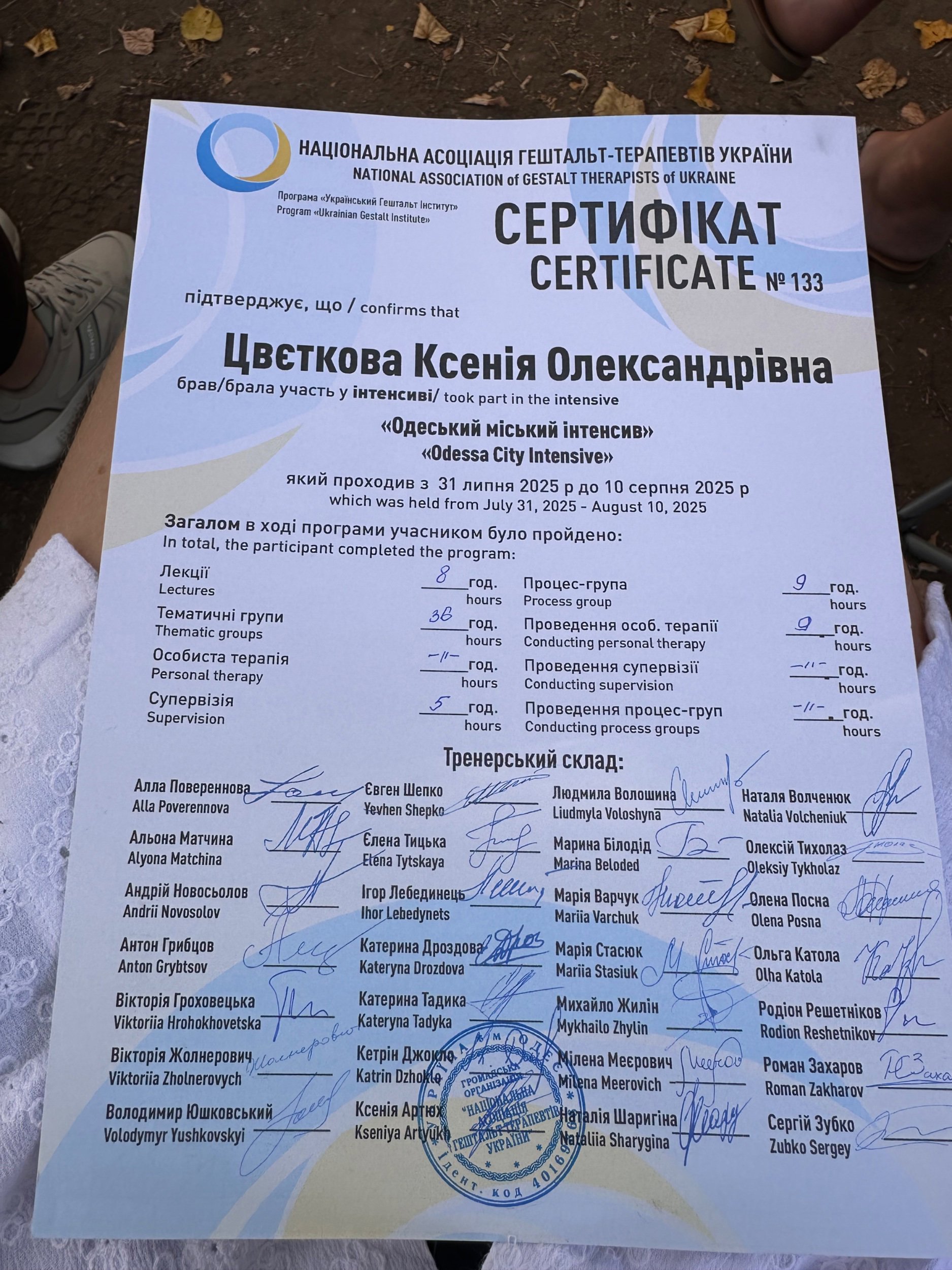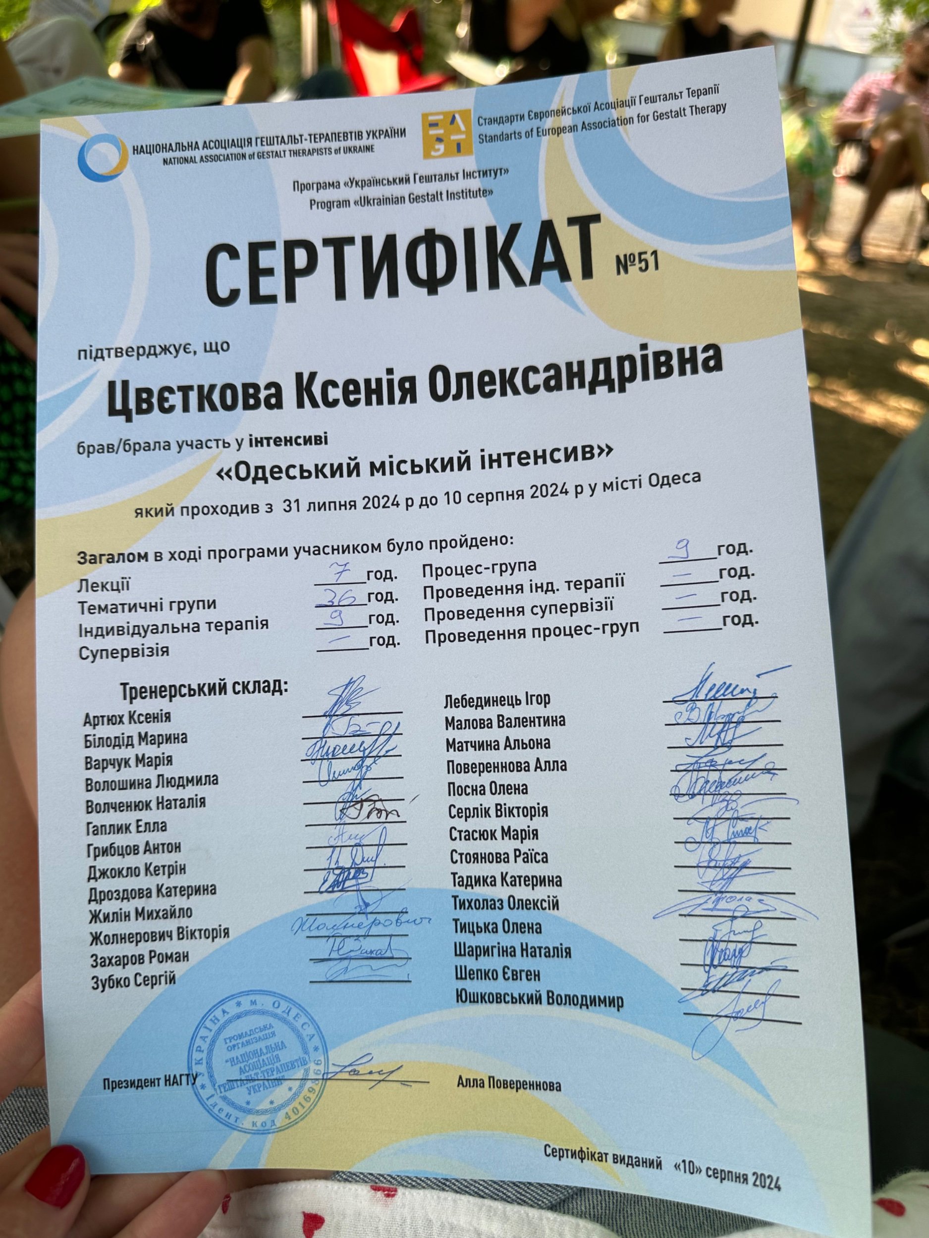 Национальная ассоциация гештальт терапевтов Украины-ноябрь 2022-настоящее время