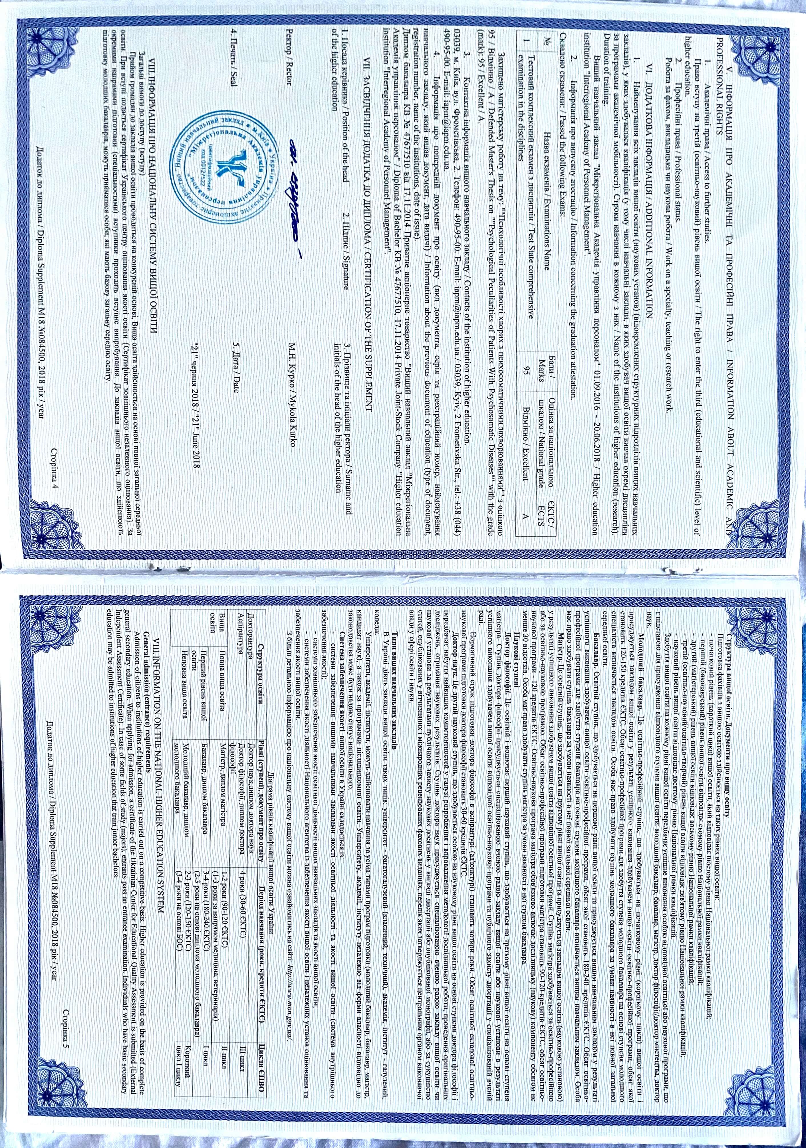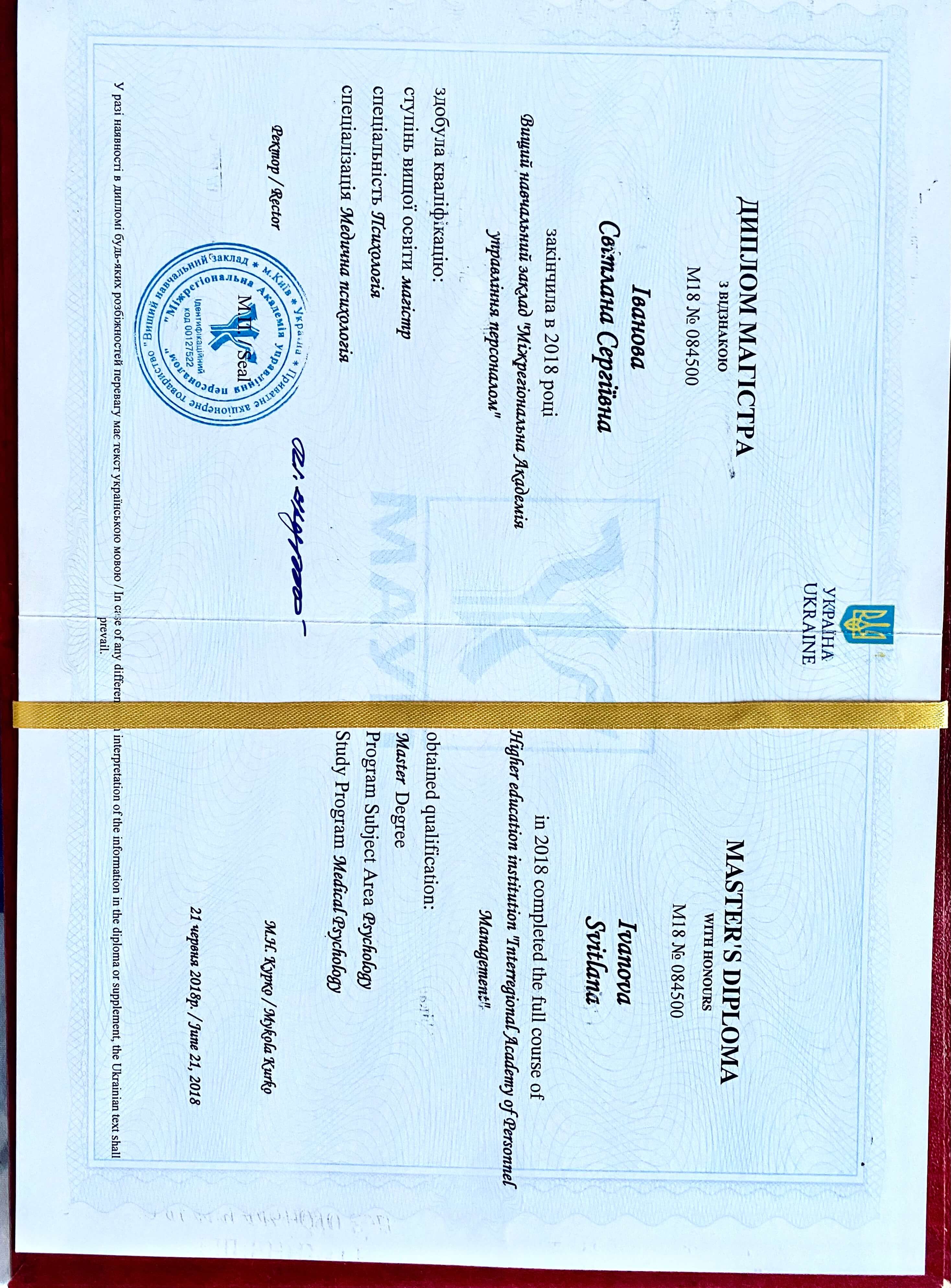 "ВУЗ" Межрегиональная Академия управления персоналом", медицинский психолог;