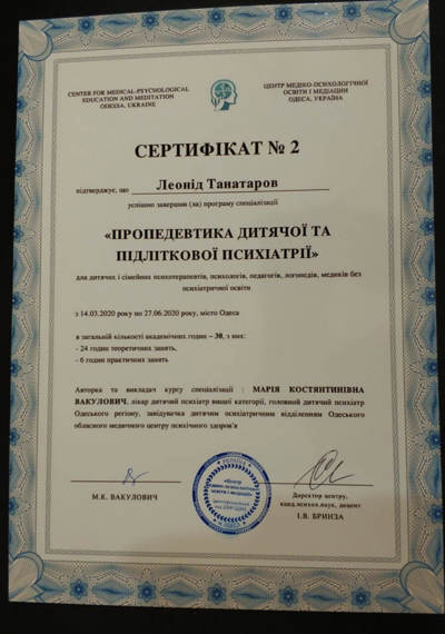 Пропедевтика детской и подростковой психиатрии (курсы) - 30 часов.