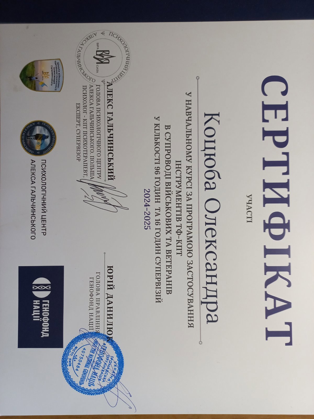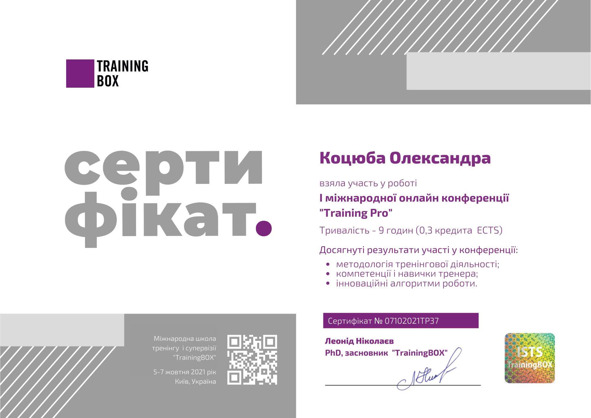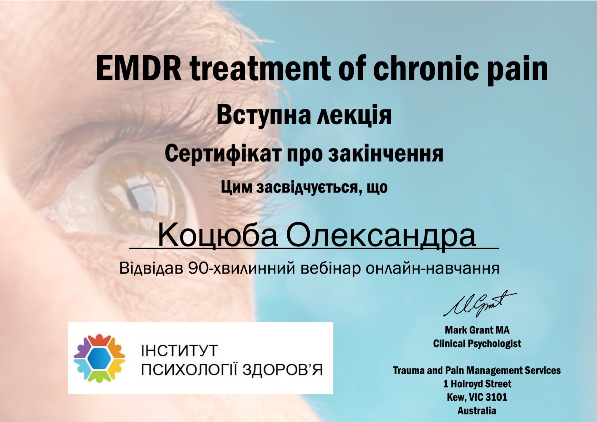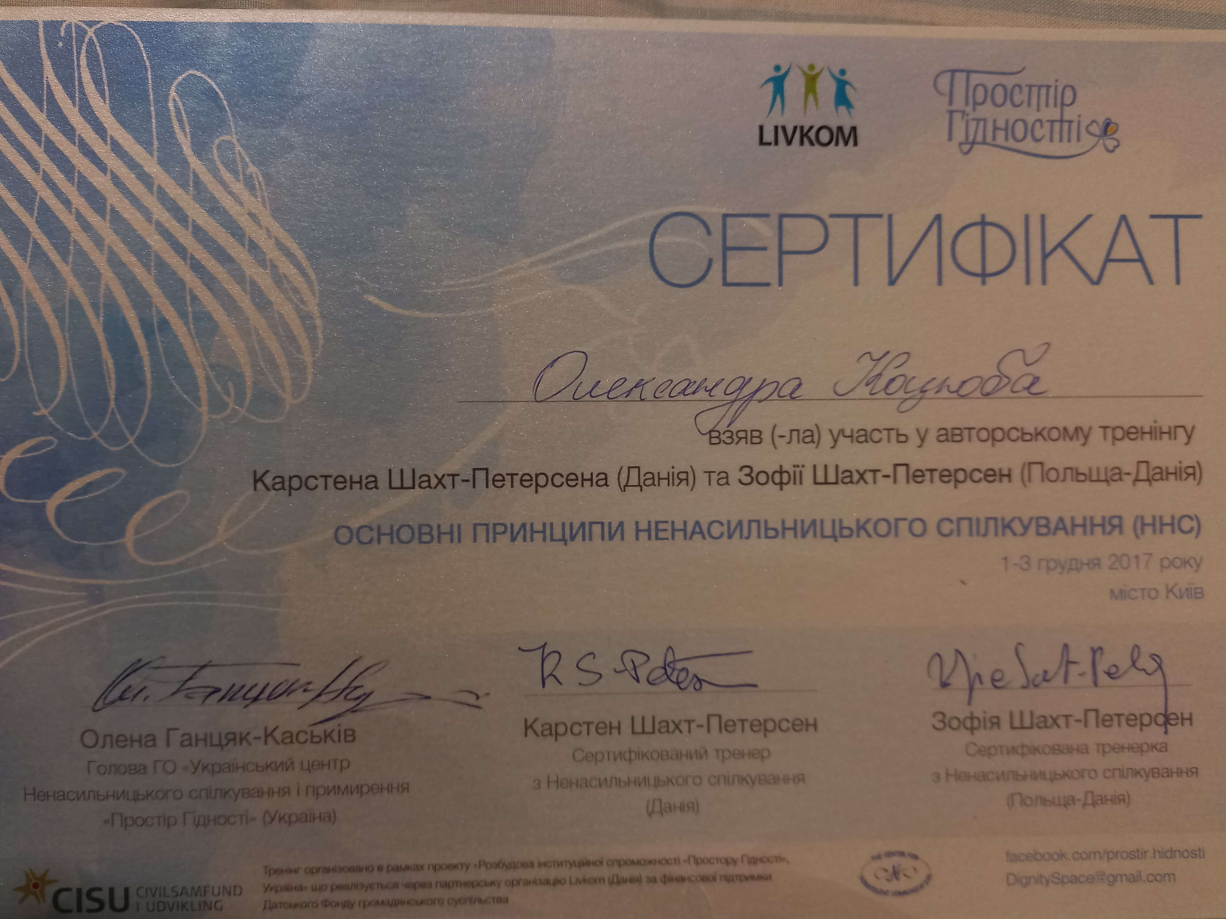 Киевский институт бизнеса и технологий по специальности "Психология". Международный институт последипломного образования по специальности "Травматерапия".