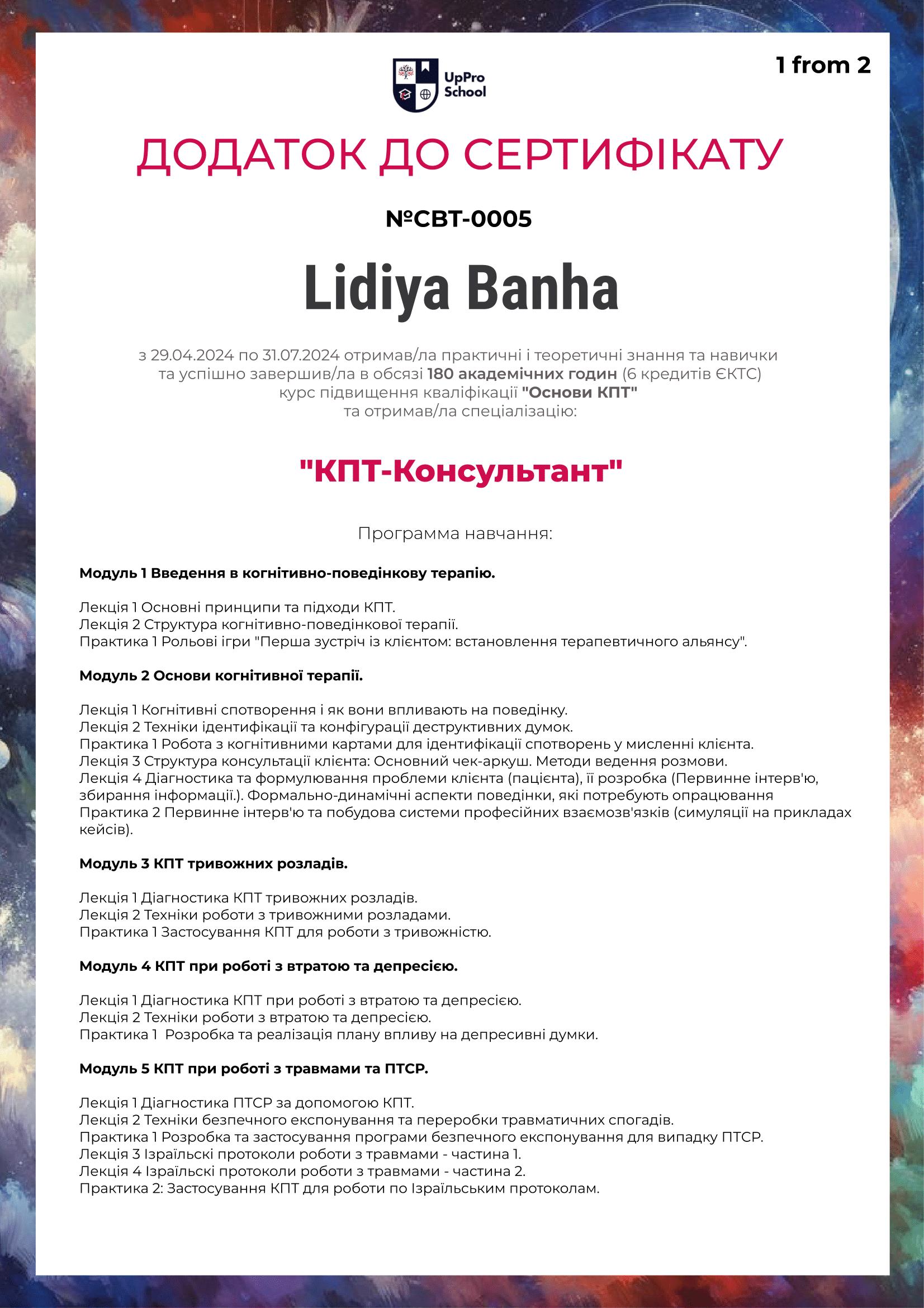 Поздравляю, меня зовут Лидия, я дипломированный психолог, КПТ – консультант. Я замужем и воспитываю двух сыновей 14 и 10 лет.
