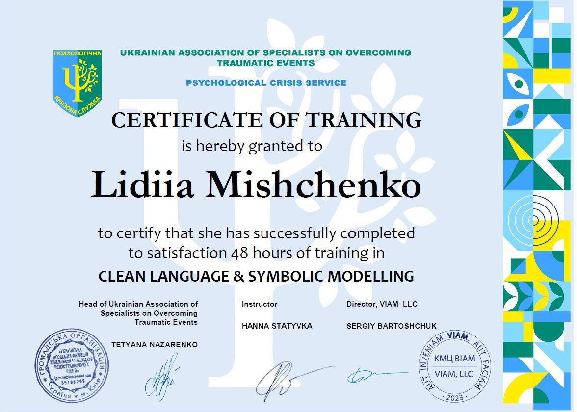 Працюю в інтегративному підході, орієнтуючись на особистість клієнта, в більшості використовую психоаналітичні інструменти, когнітивно-поведінковий підхід. Багато консультую людей в кризових станах, які знаходяться в пошуку нових сенсів. Взагалі люблю супроводжувати людей на їх власному шляху самопізнання і спостерігати маленькі дива, що відбуваються з ними і призводять до важливих і значних життєвих змін.