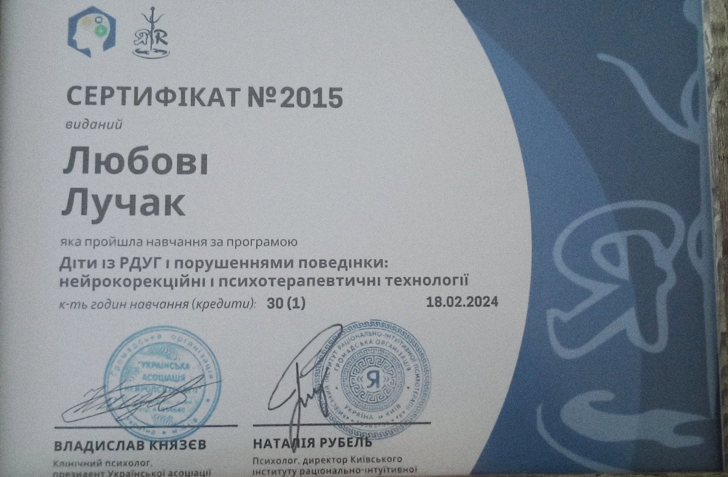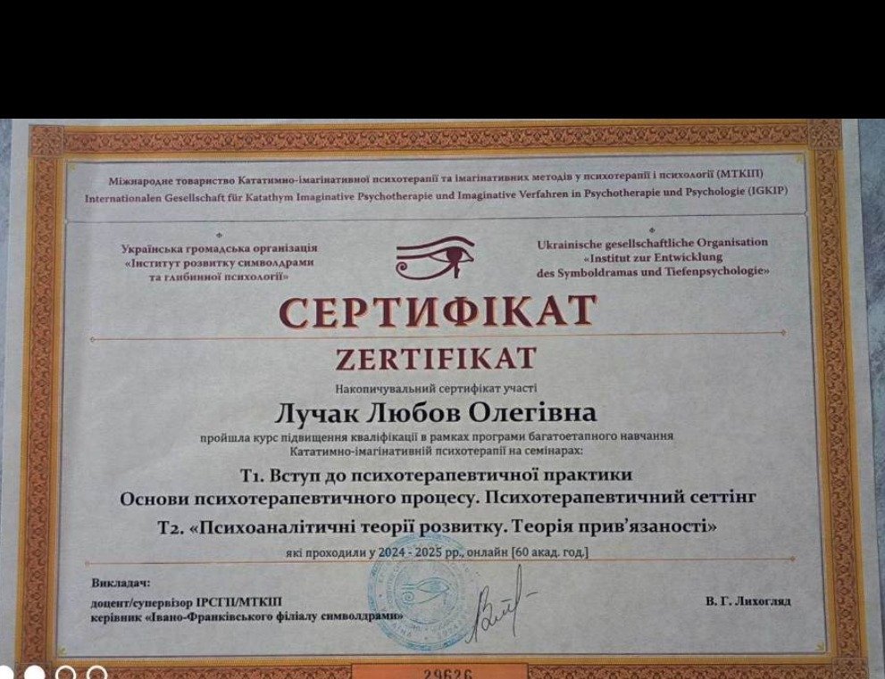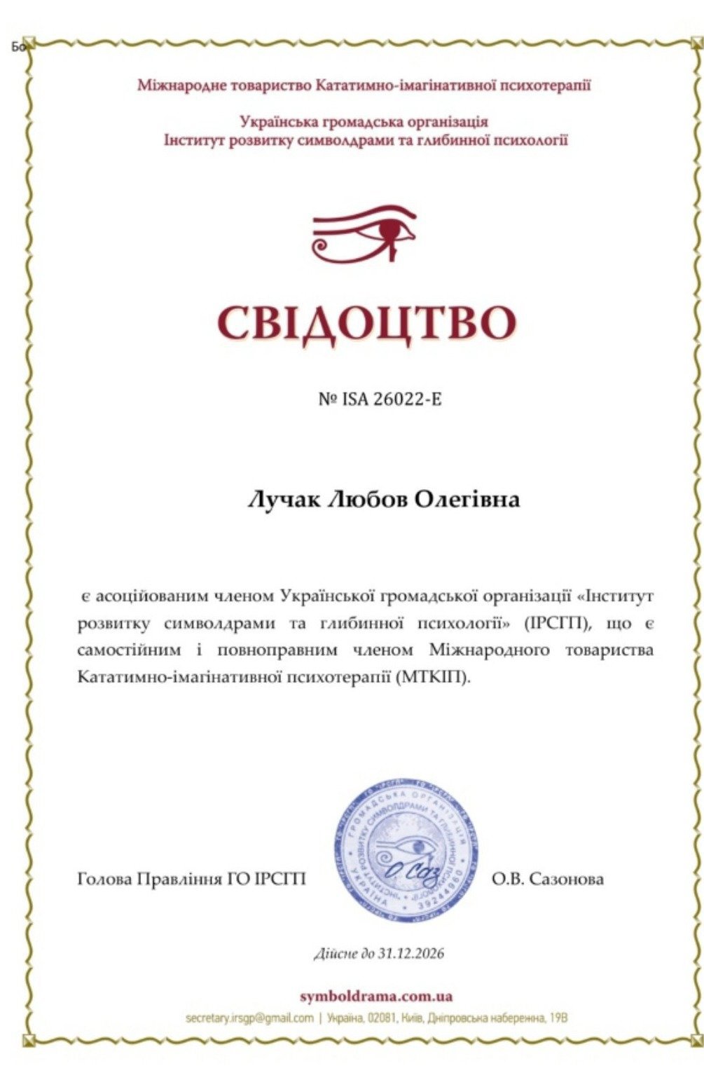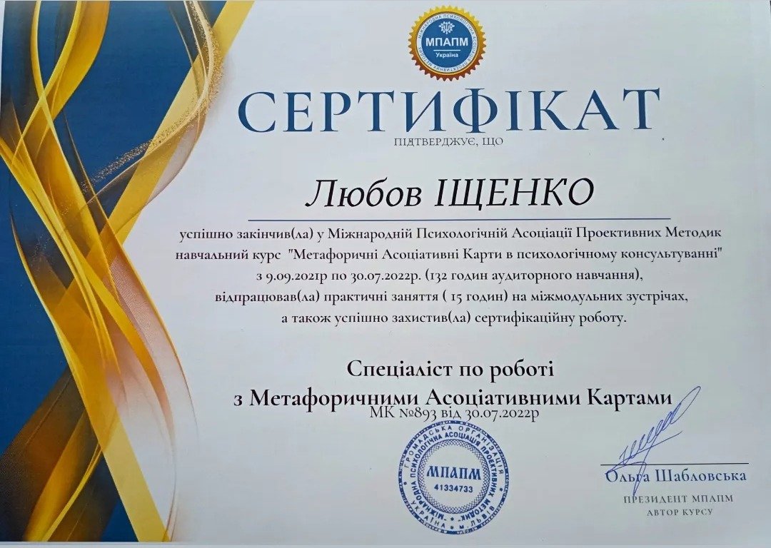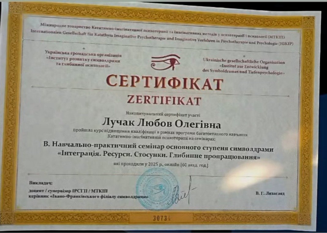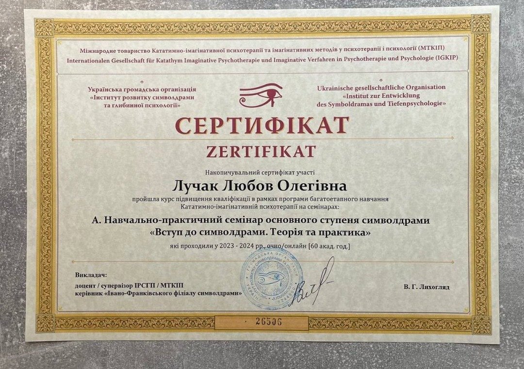 асоційований член Української громадської організації «Інститут розвитку символдрами та глибинної психології»