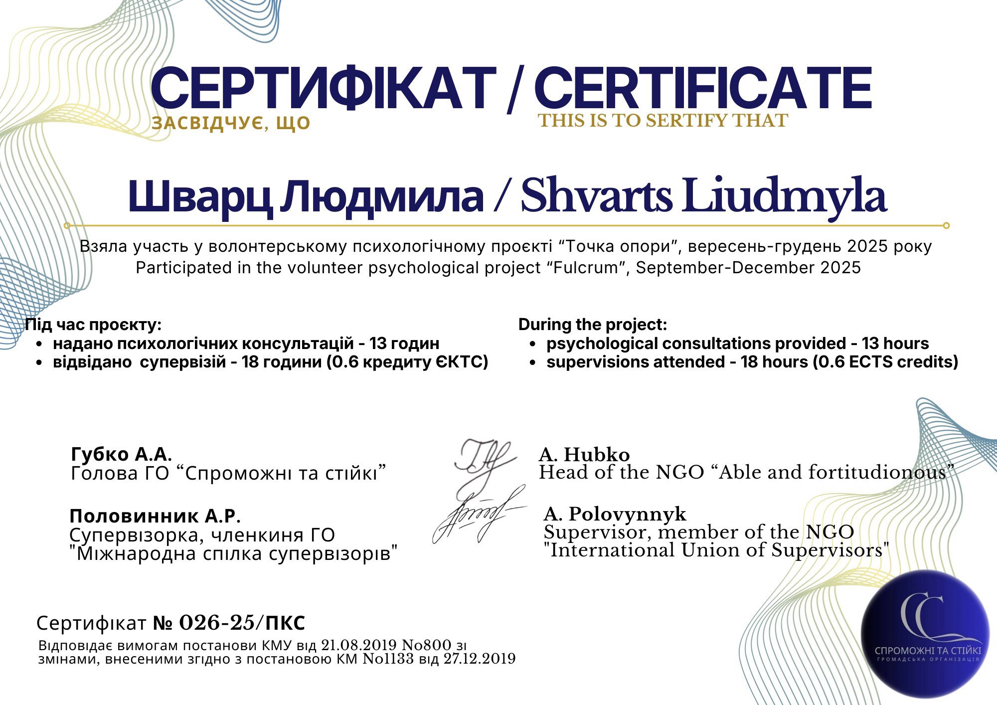 Национальный университет биоресурсов и природопользования Украины – магистр психологии.