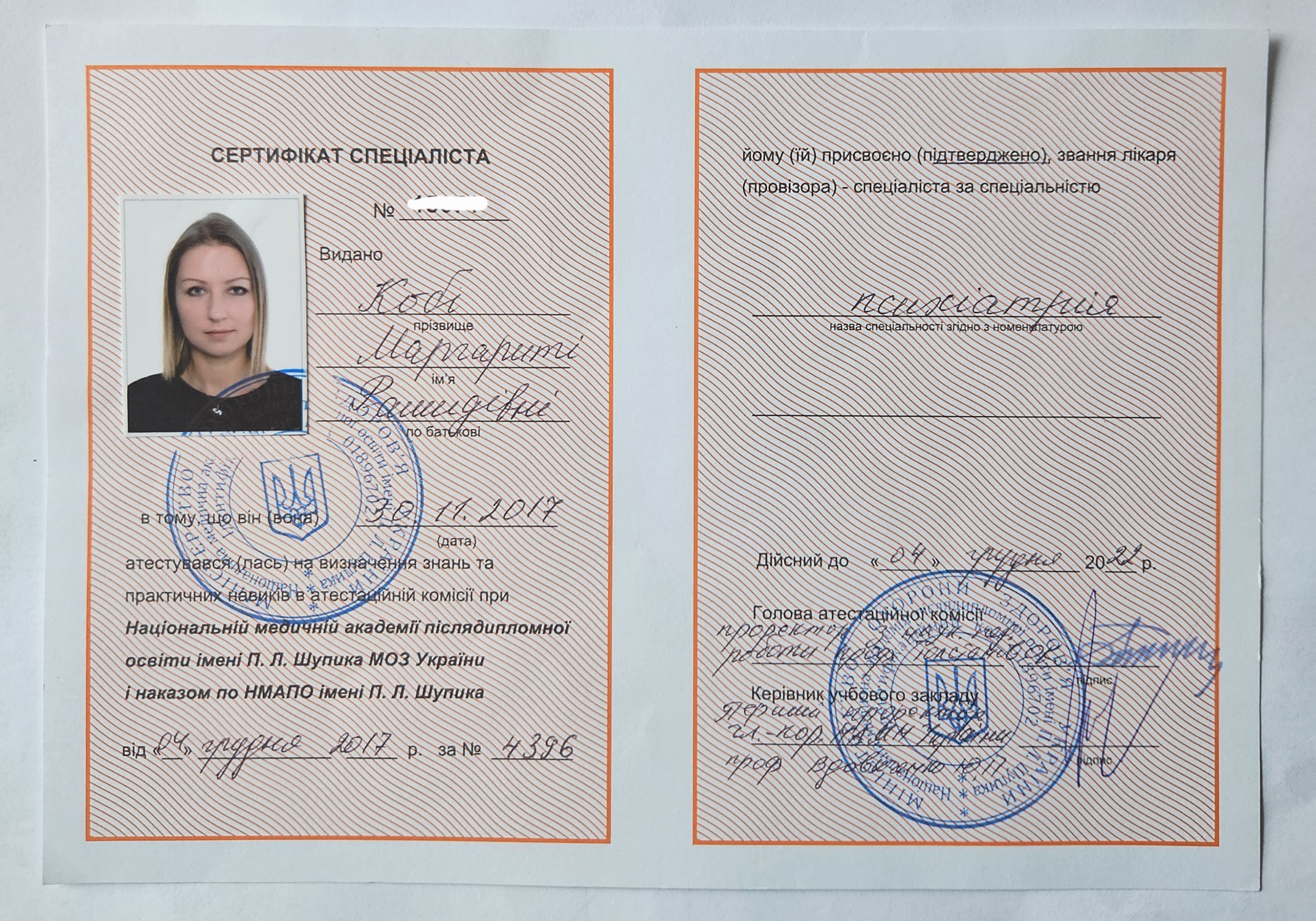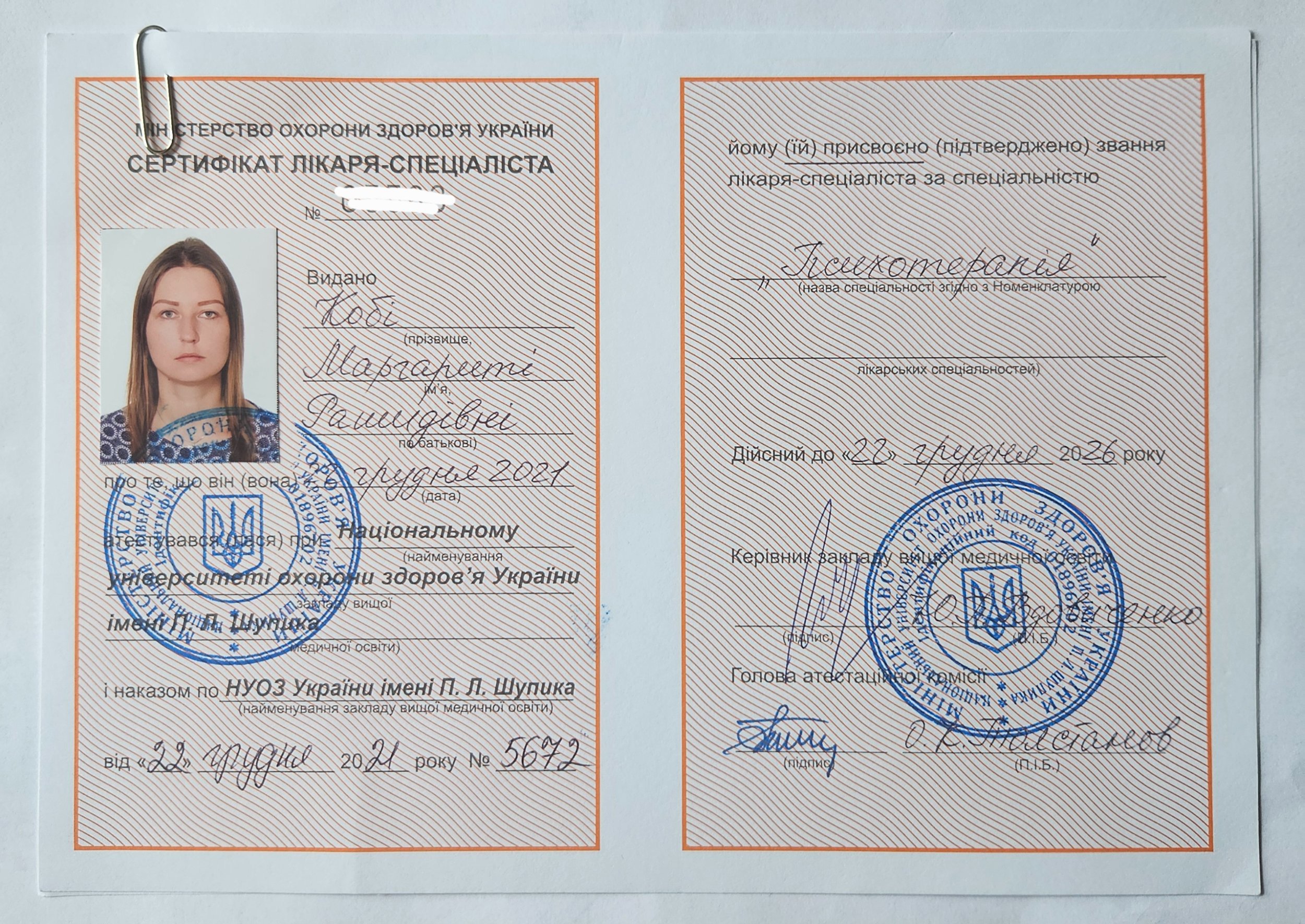 Мой путь в профессию начался с медицины. Я получила медицинское образование по специальности «лечебное дело», окончила интернатуру по специальности «психиатрия».