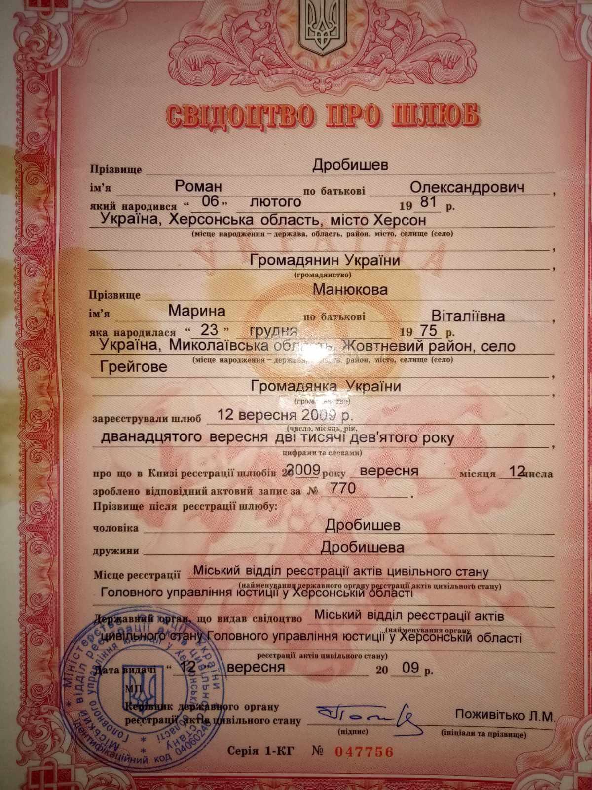 СВІДОЦТВО ПРО ШЛЮБ
