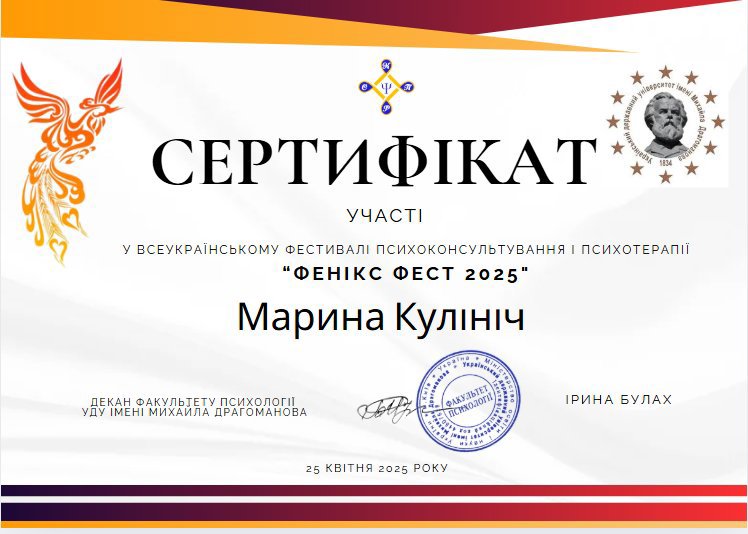 ВСЕУКРАЇНСЬКОМУ ФЕСТИВАЛІ ПСИХОКОНСУЛЬТУВАННЯ І ПСИХОТЕРАПІЇ "ФЕНІКС ФЕСТ 2025"