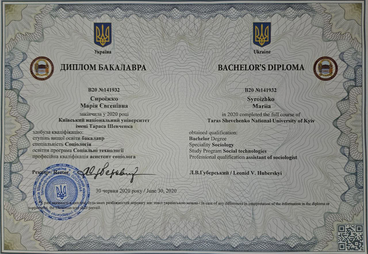 Бакалавр социологии, КНУ им. Шевченко