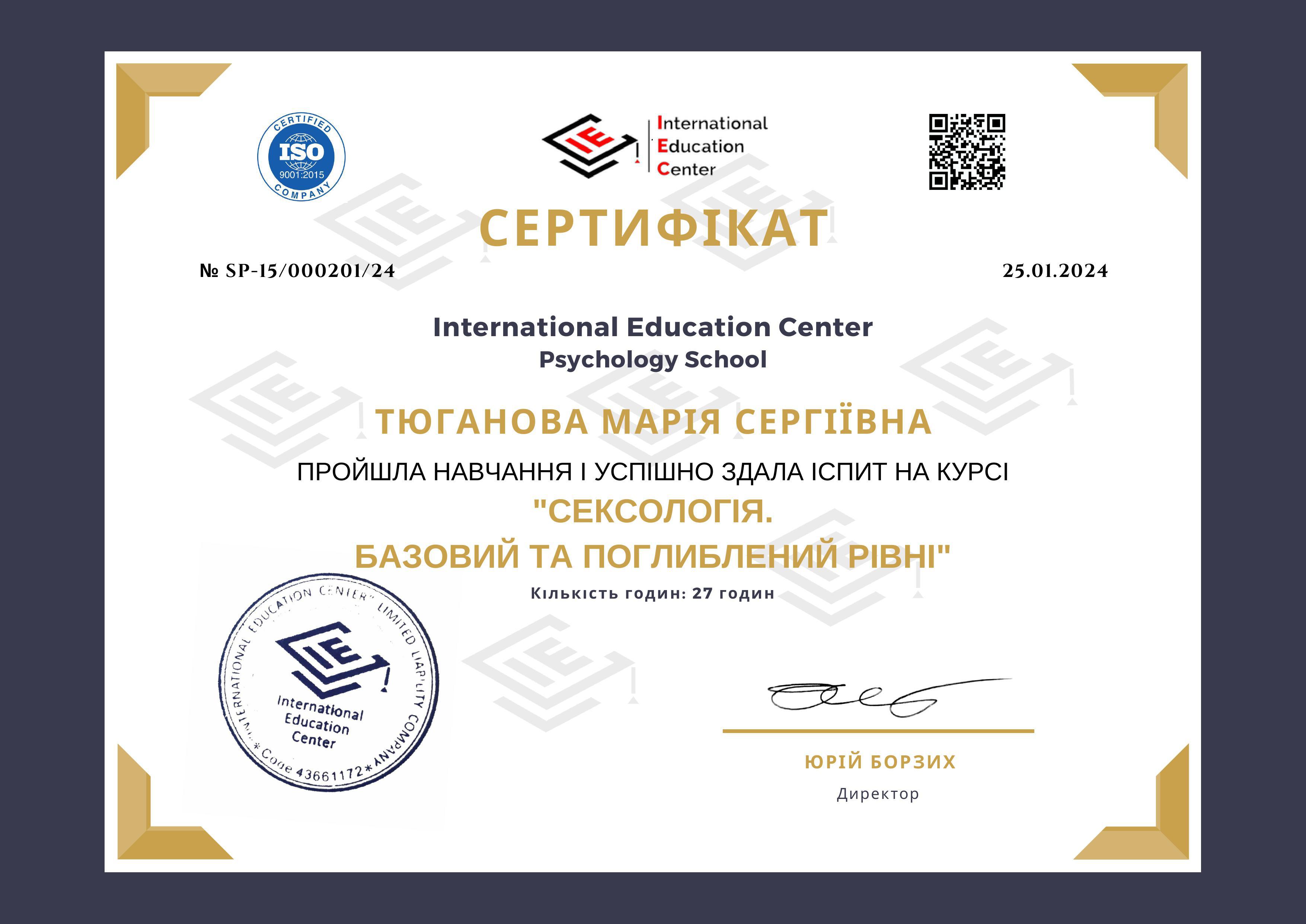 International Education Center. "Сексология. Базовый и углубленный уровни", 27 часов