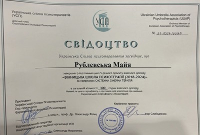 Также, я верю в то, что когда клиент работает за стойким и порядочным, жизнелюбивым терапевтом, то он имеет больше шансов эволюционировать в своих запросах, реализовать свои собственные потребности или найти наиболее гуманные решения своих жизненных трудностей.