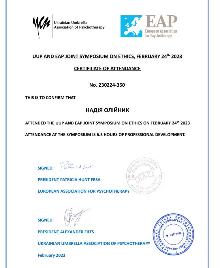 Ukrainian Umbrella Association of Psychotherapy, European Association for Psychotherapy