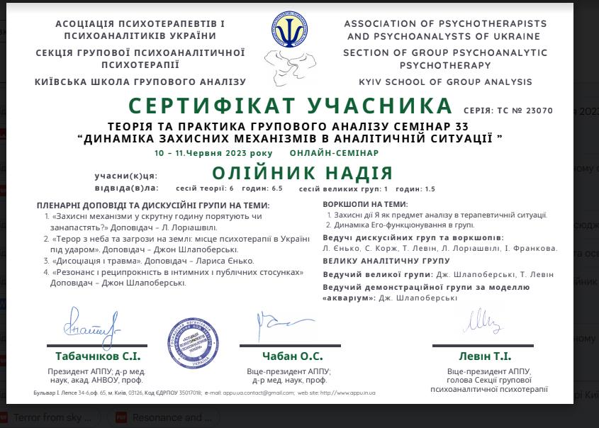 АСОЦІАЦІЯ ПСИХОТЕРАПЕВТІВ І ПСИХОАНАЛІТИКІВ УКРАЇНИ