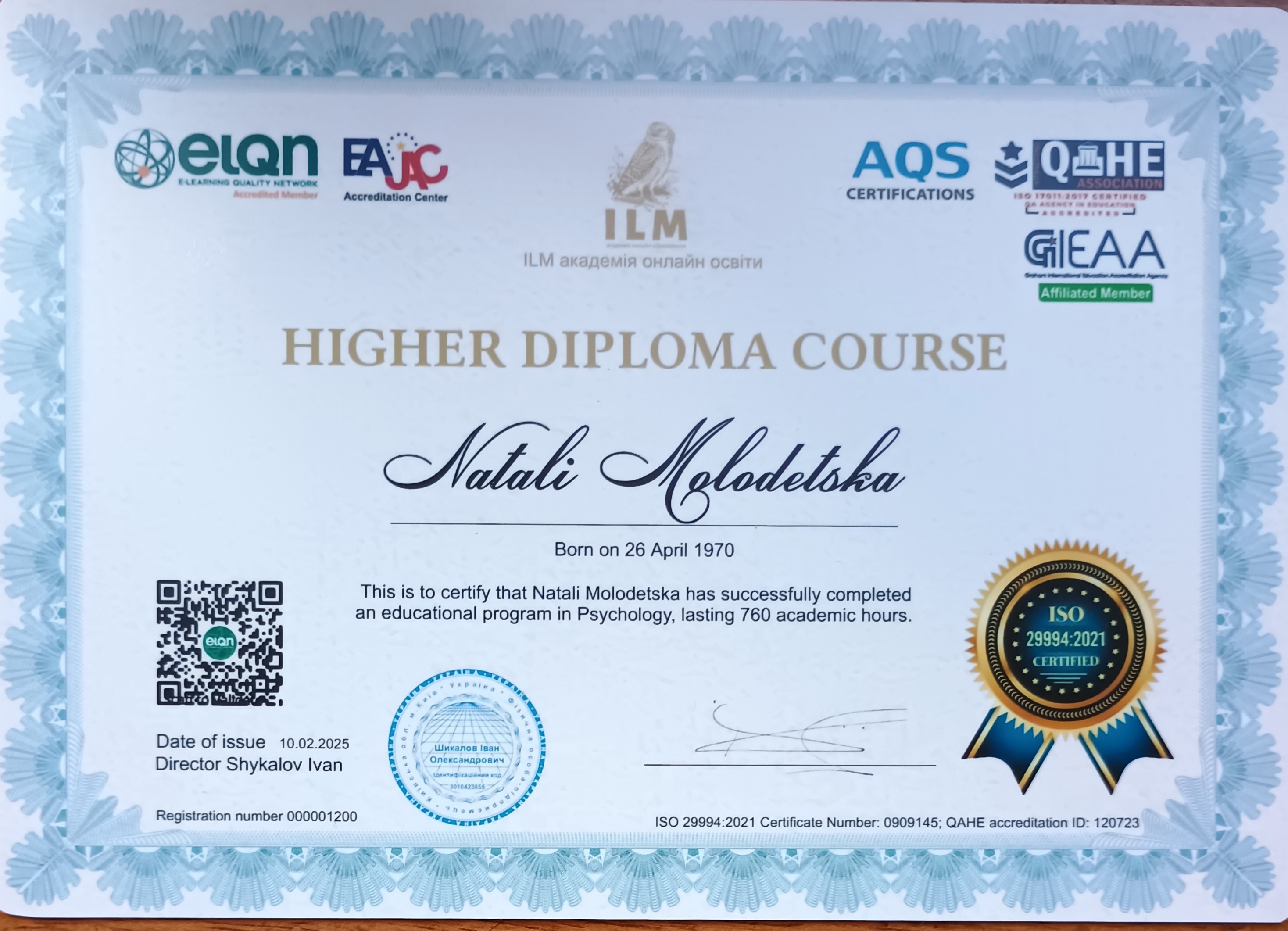 По направлению Практической Психологии объемом 120 академических часов