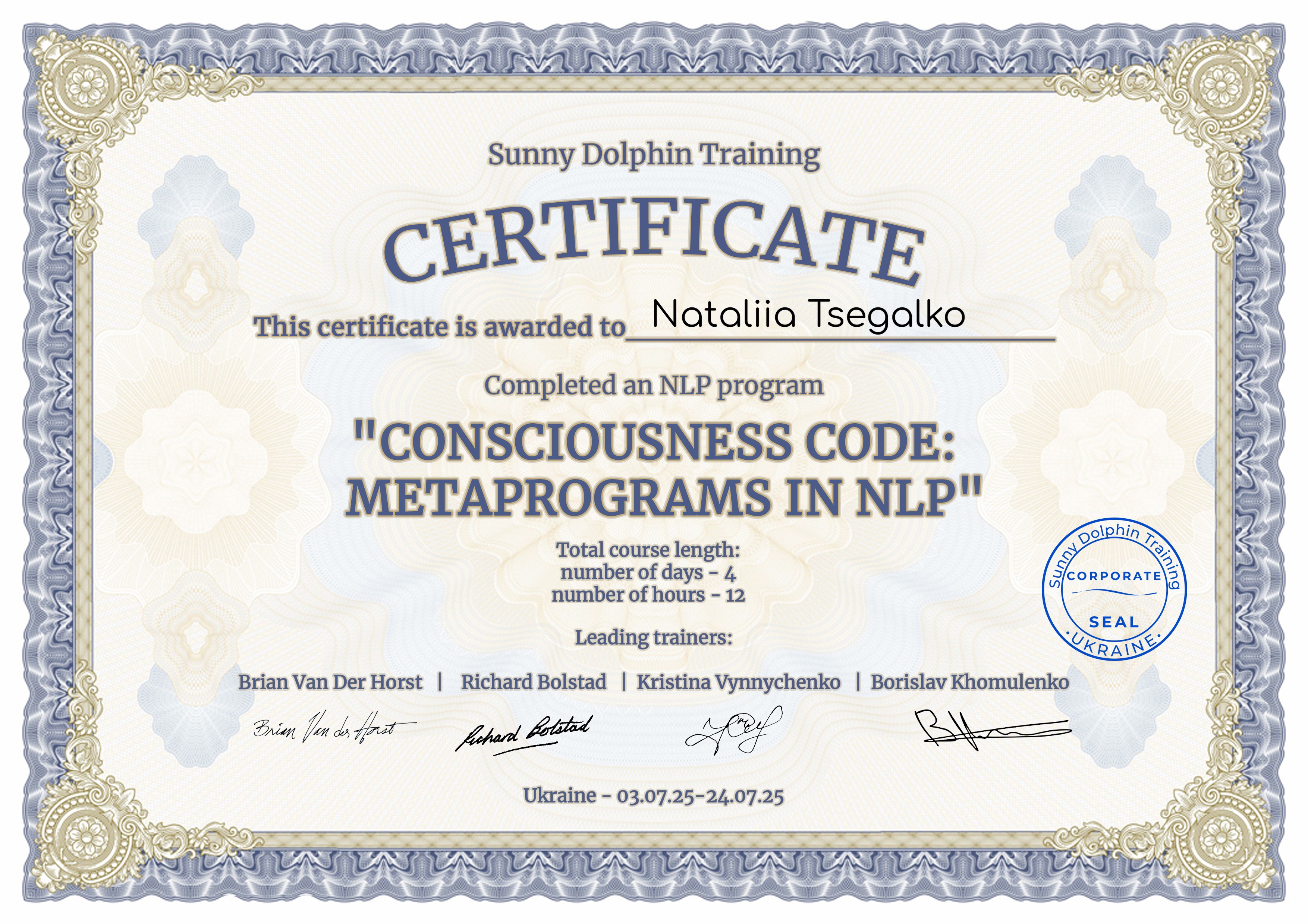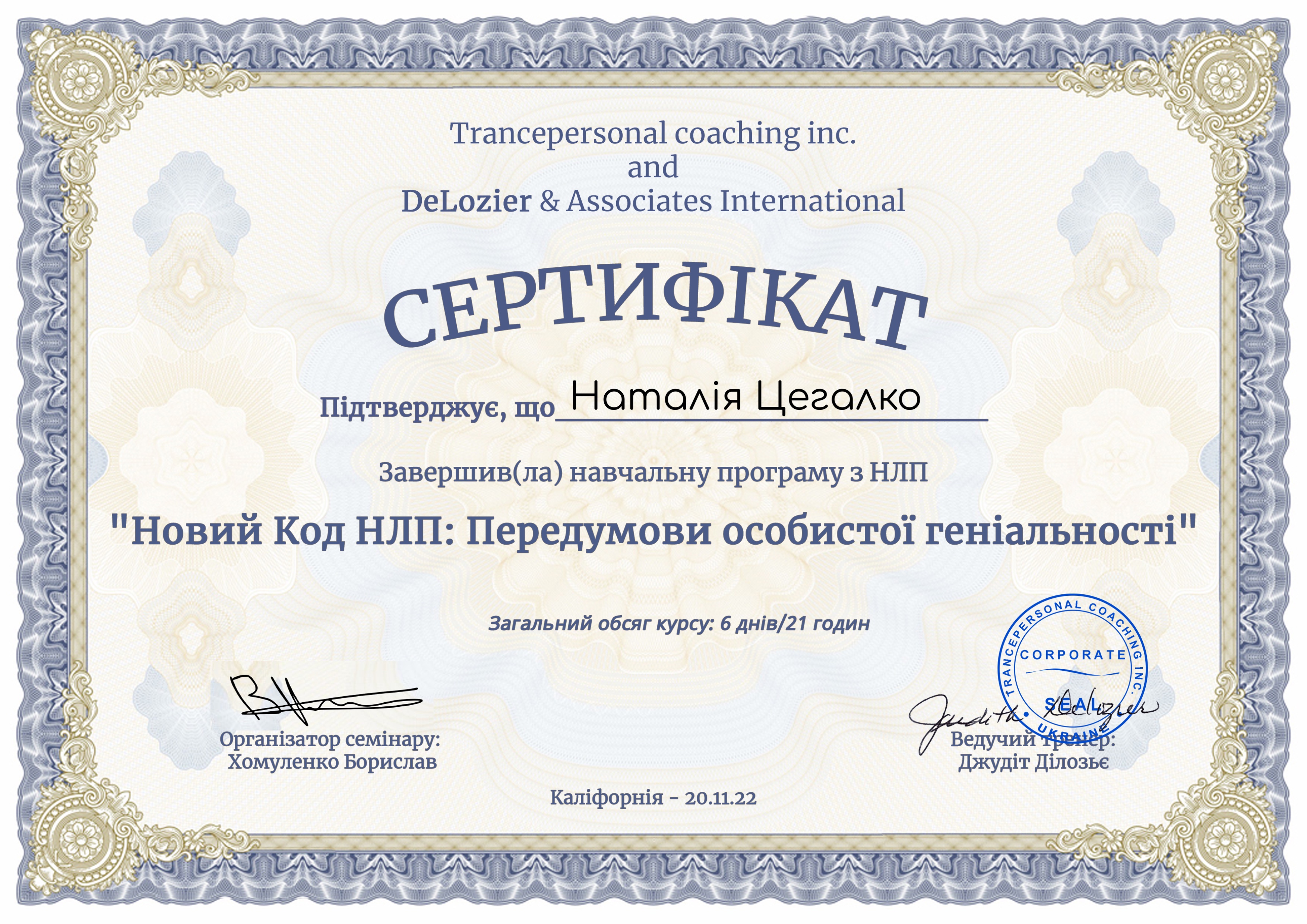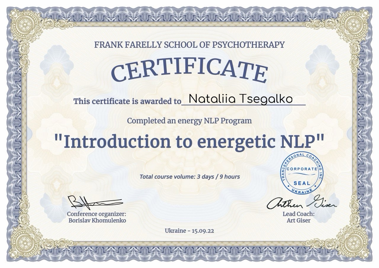 Тренер (проведення тренінгів з використанням НЛП-технологій)