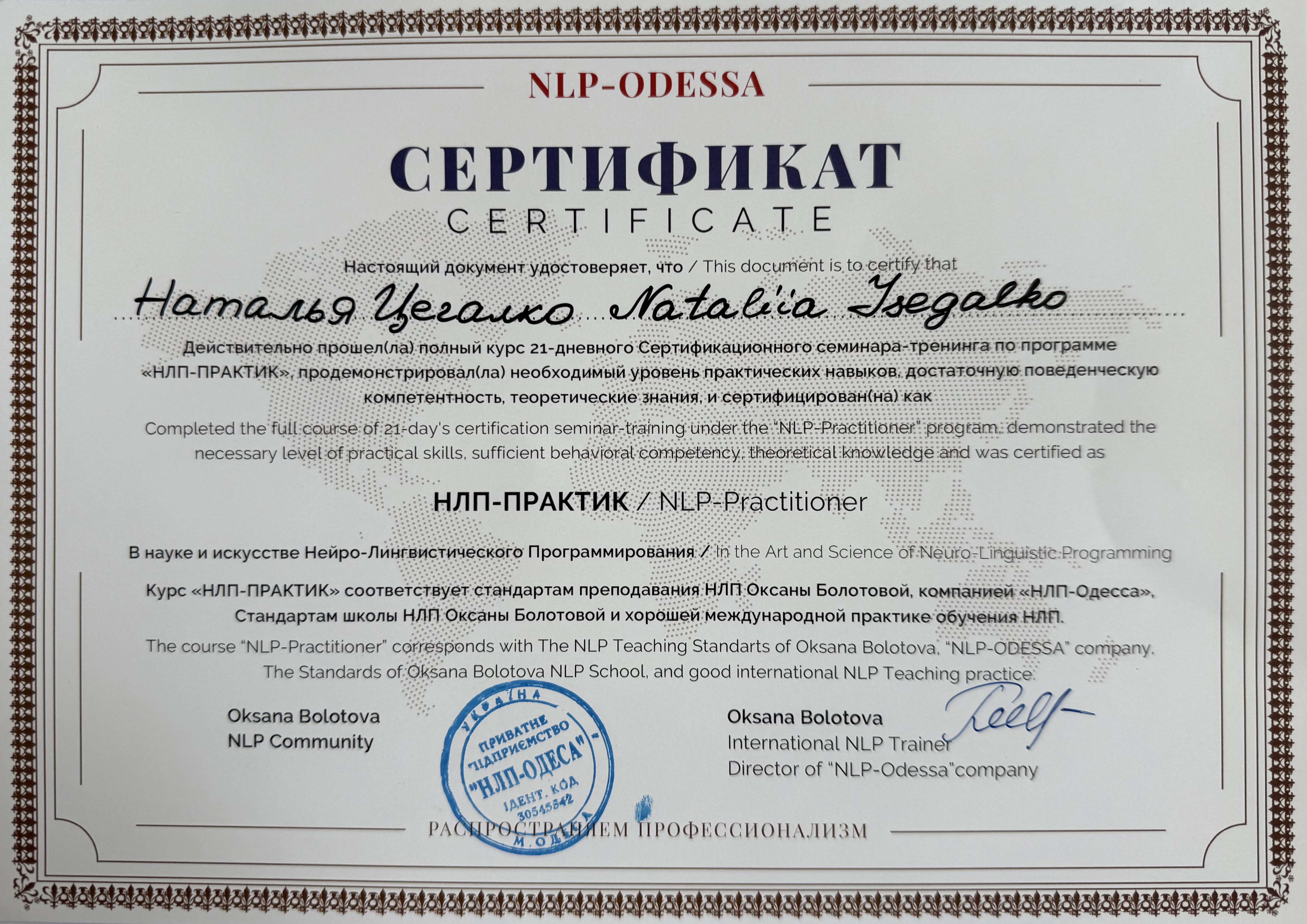 ПРИВАТНЕ ПІДПРИЄМСТВО "НЛП-ОДЕСА"