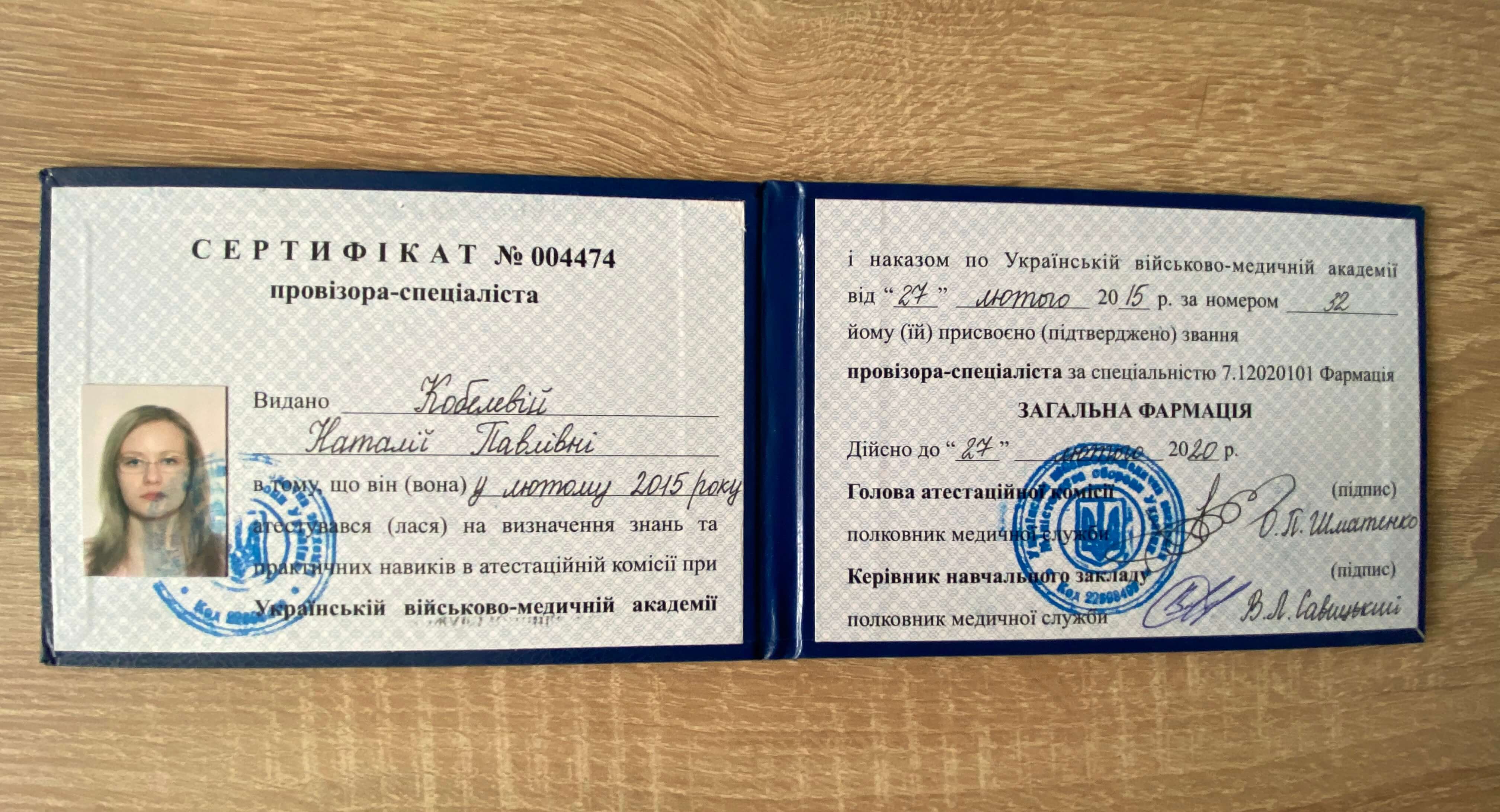 Сертификаты: