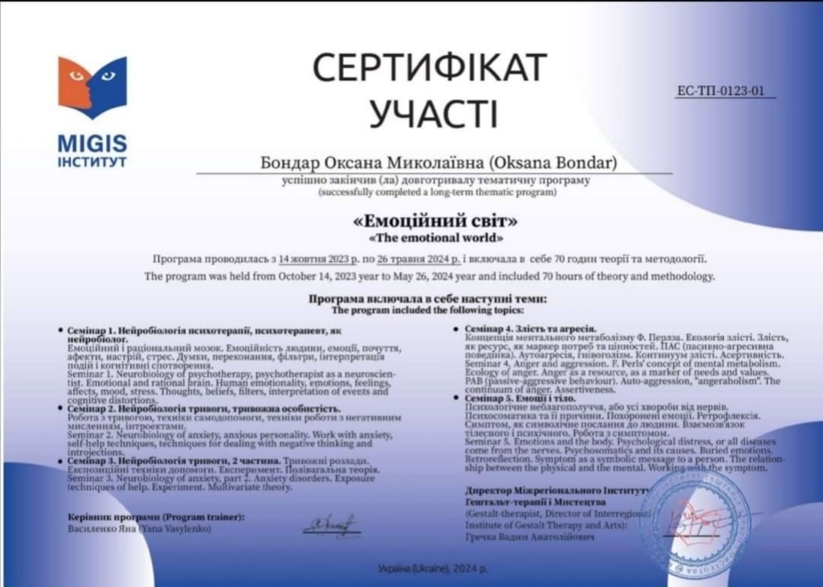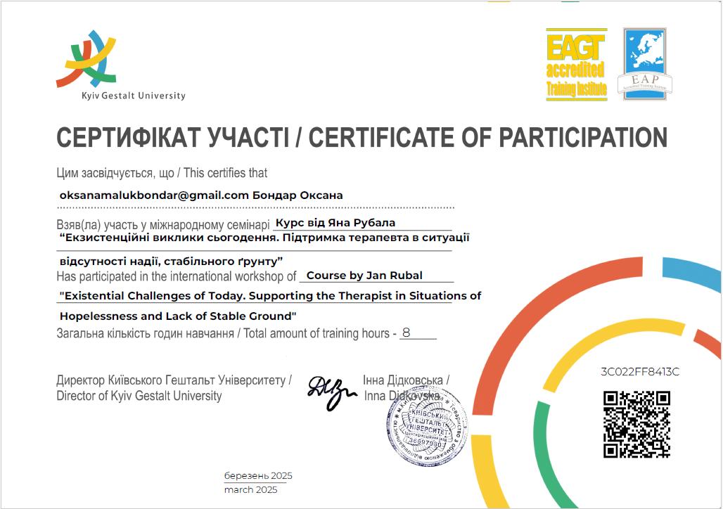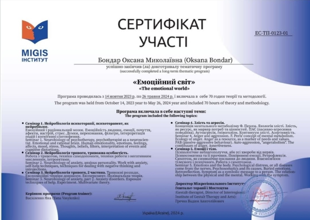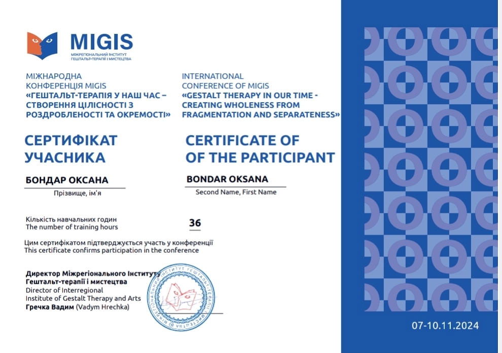 Обучаюсь на гештальт терапевта.