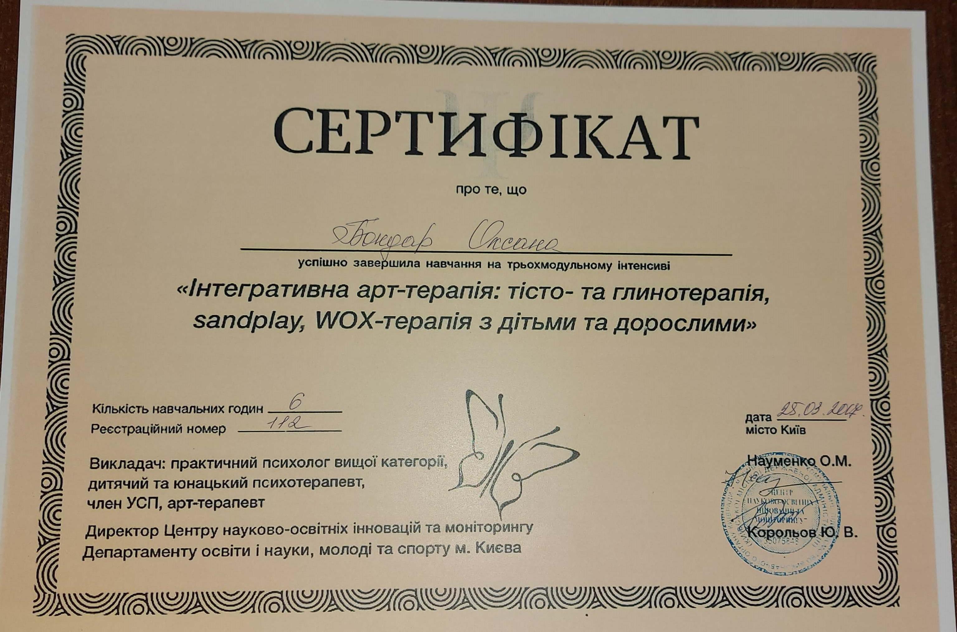 -- Интегративная арт-терапия: тесто- голинотерапия, sandplay, WOX-терапия з детьми та взрослыми;