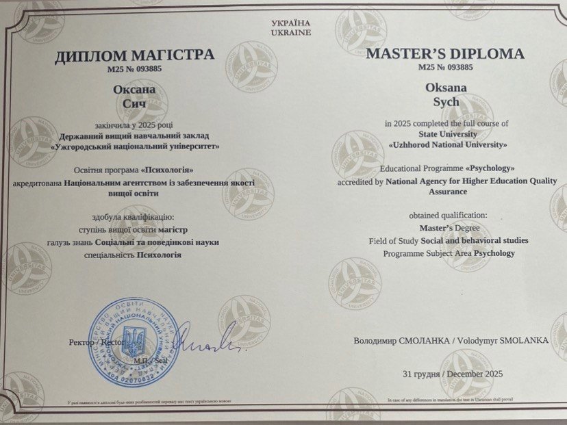Этот опыт я приношу в работу с клиентами – сочетая профессиональные знания с лично прожитым, с уважением к уникальности каждого и верой в способность к переменам.