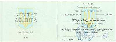 На данный момент кандидат психологических наук, доцент, доцент кафедры специального и инклюзивного образования Киевского университета имени Бориса Гринченка.