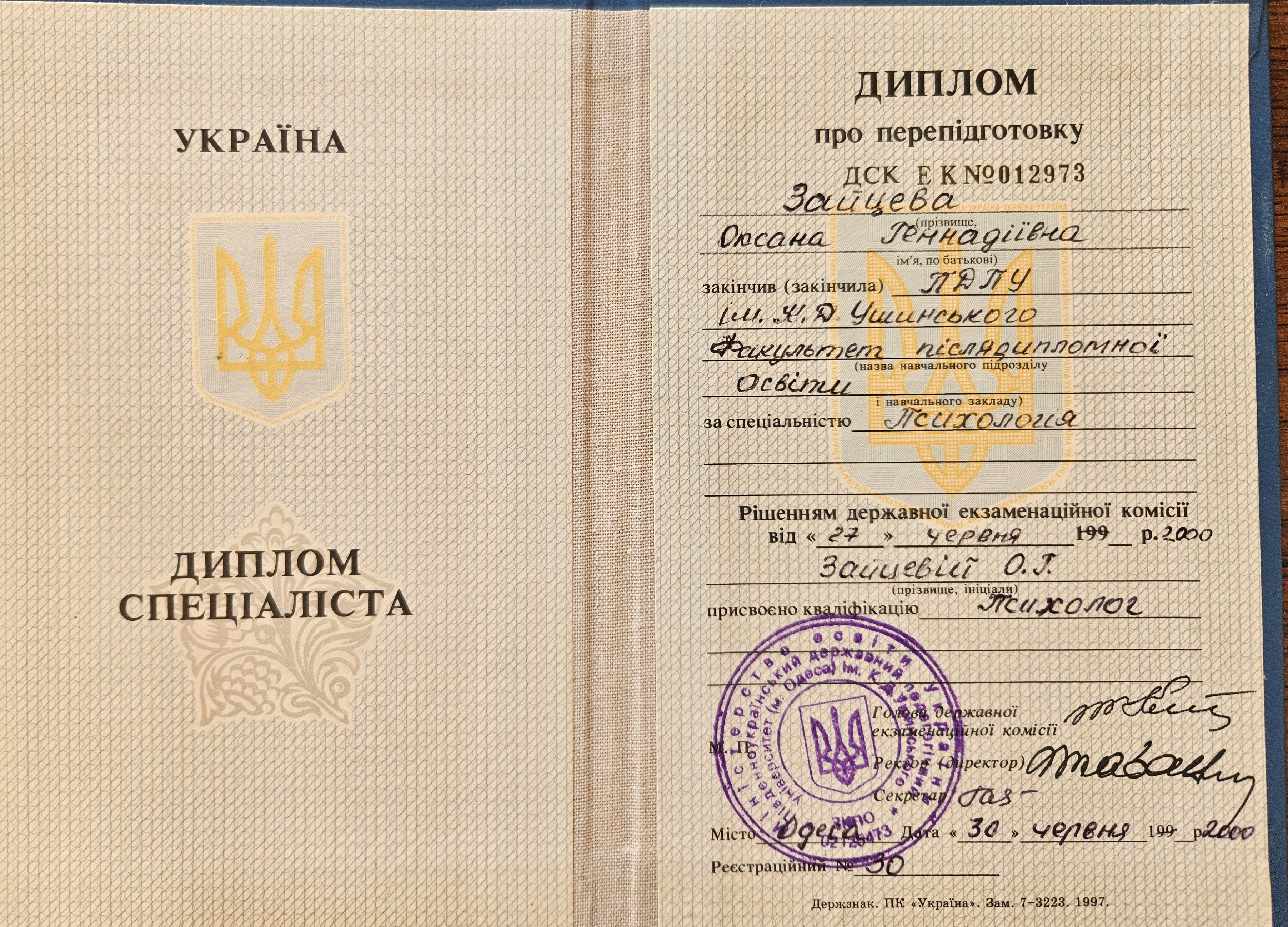 Мой профессиональный путь начинался с психологической работы в социальной службе, где занималась семейным и детским консультированием. Со временем создавала сеть "телефонов доверия" Одесской области, готовила консультантов и волонтеров. Являлась организатором пунктов психологической поддержки для военнослужащих и членов их семей в Одесской области. Работала психологом-консультантом по развитию общин в проектах Украинского фонда социальных инвестиций.
