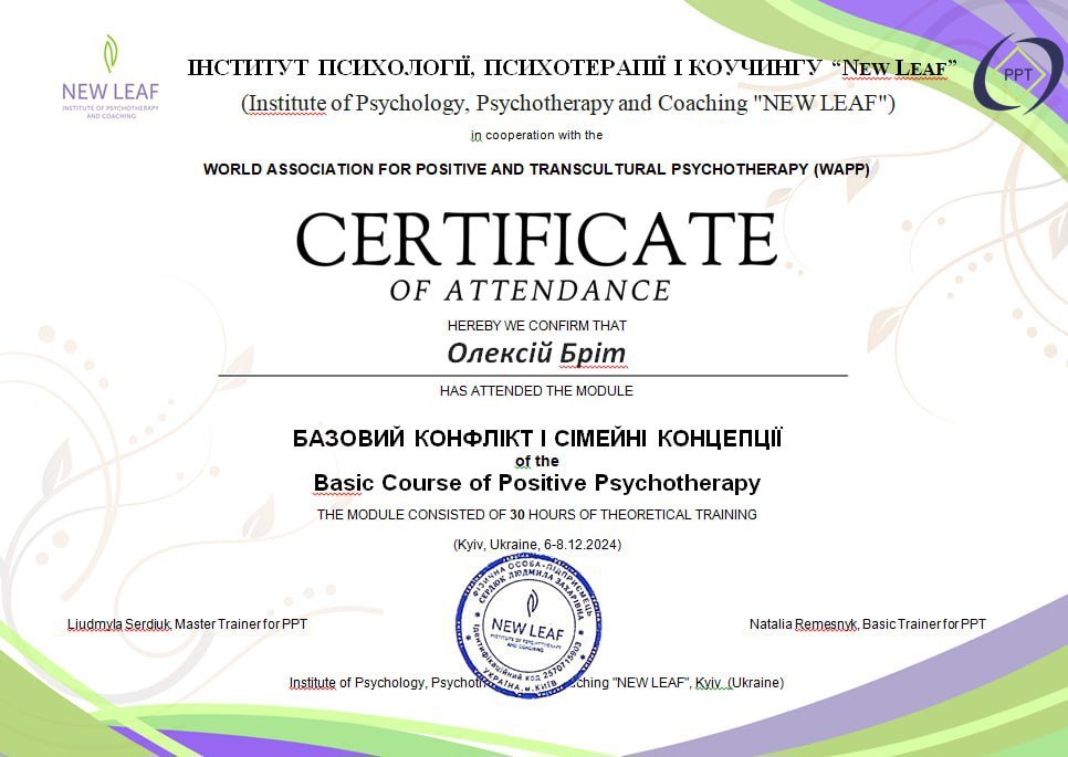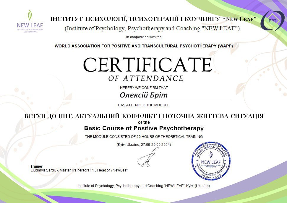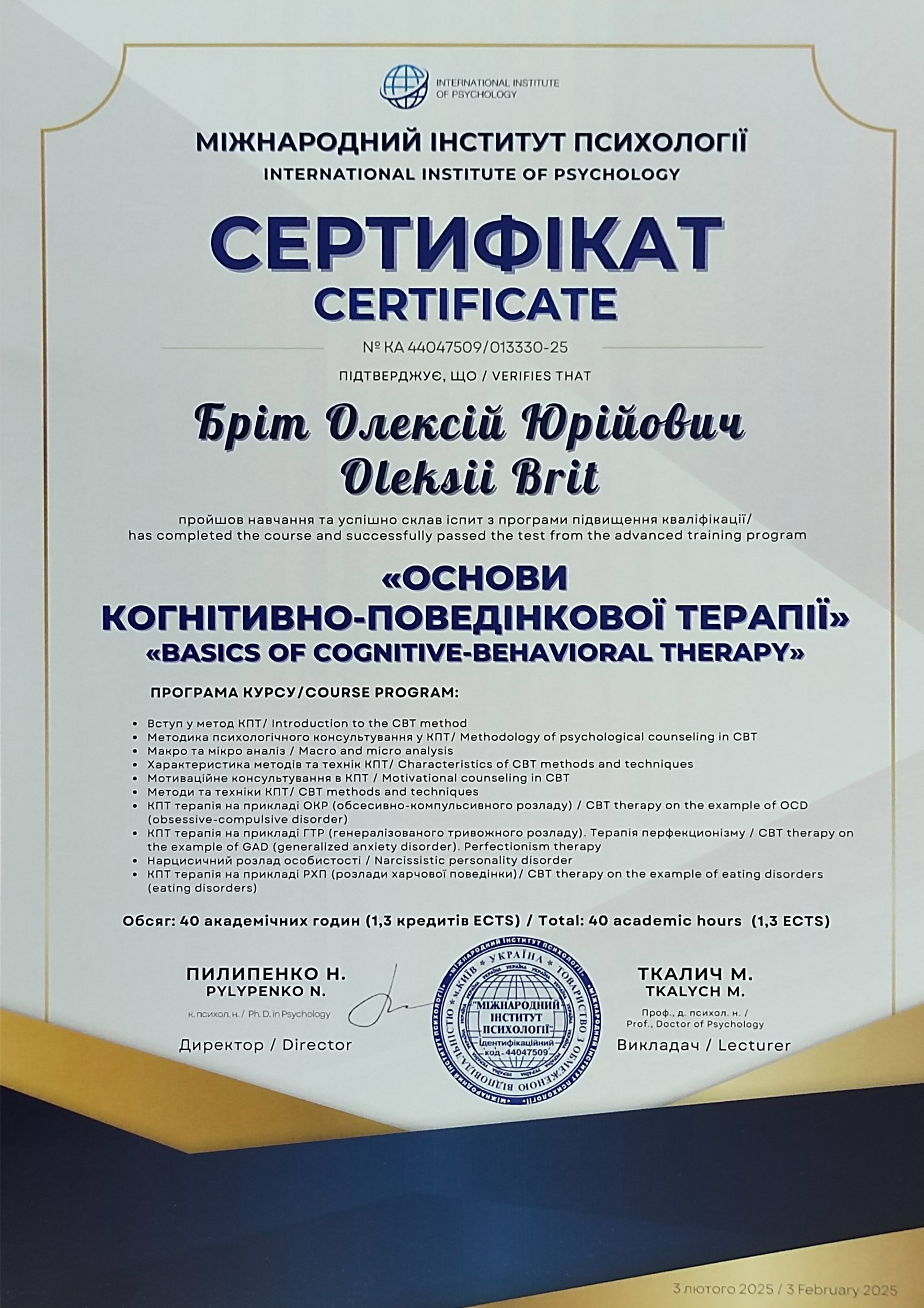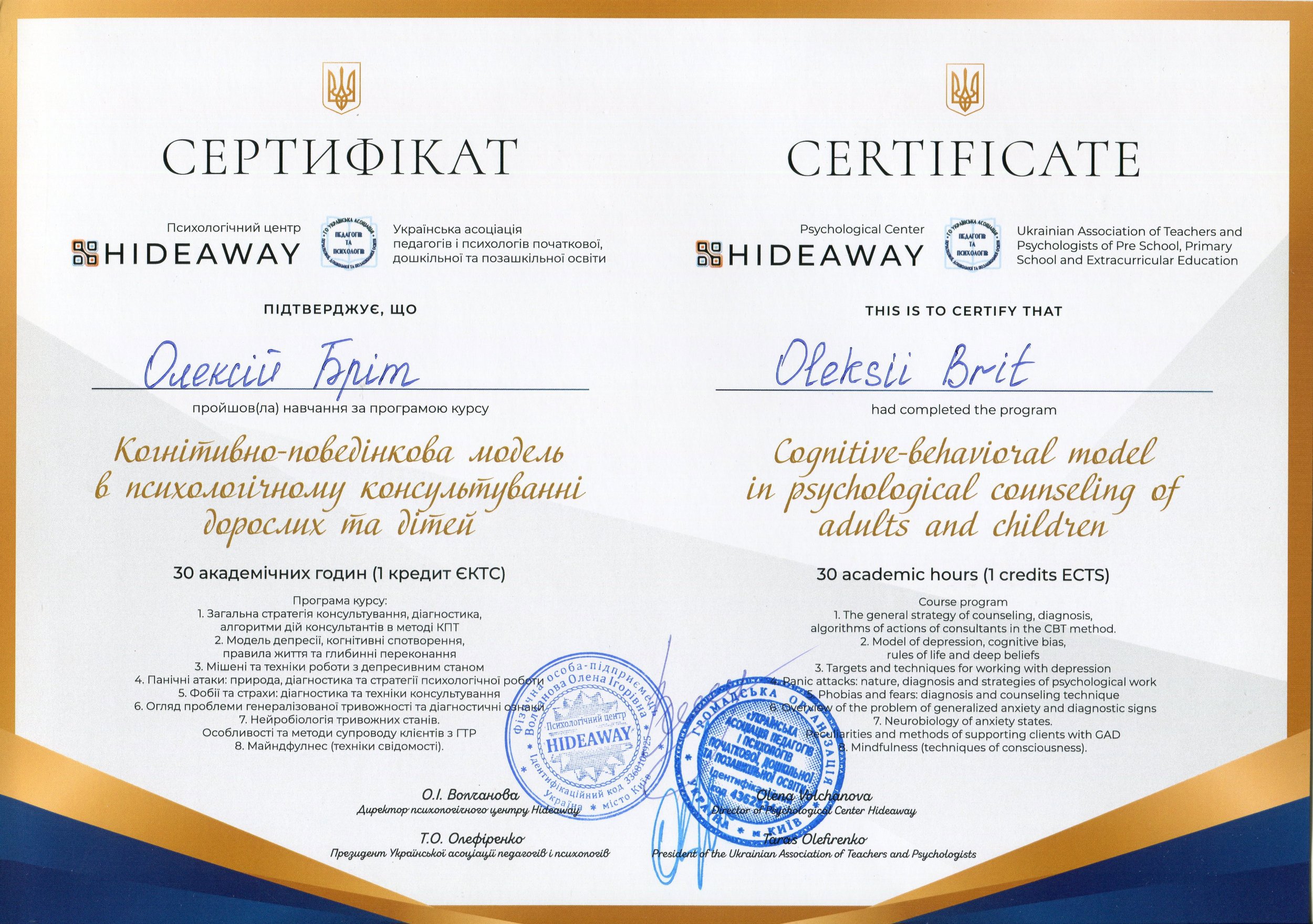 По своему второму образованию я преподаватель английского языка с большим опытом работы. Это дало мне возможность продолжить обучение в ведущих американских центрах подготовки специалистов по доказательным методам психотерапии – Когнитивно-поведенческой терапии (КПТ) и Когнитивно-процессуальной терапии – ее краткосрочным вариантом разработанным специально для работы с травмой и ПТСР.