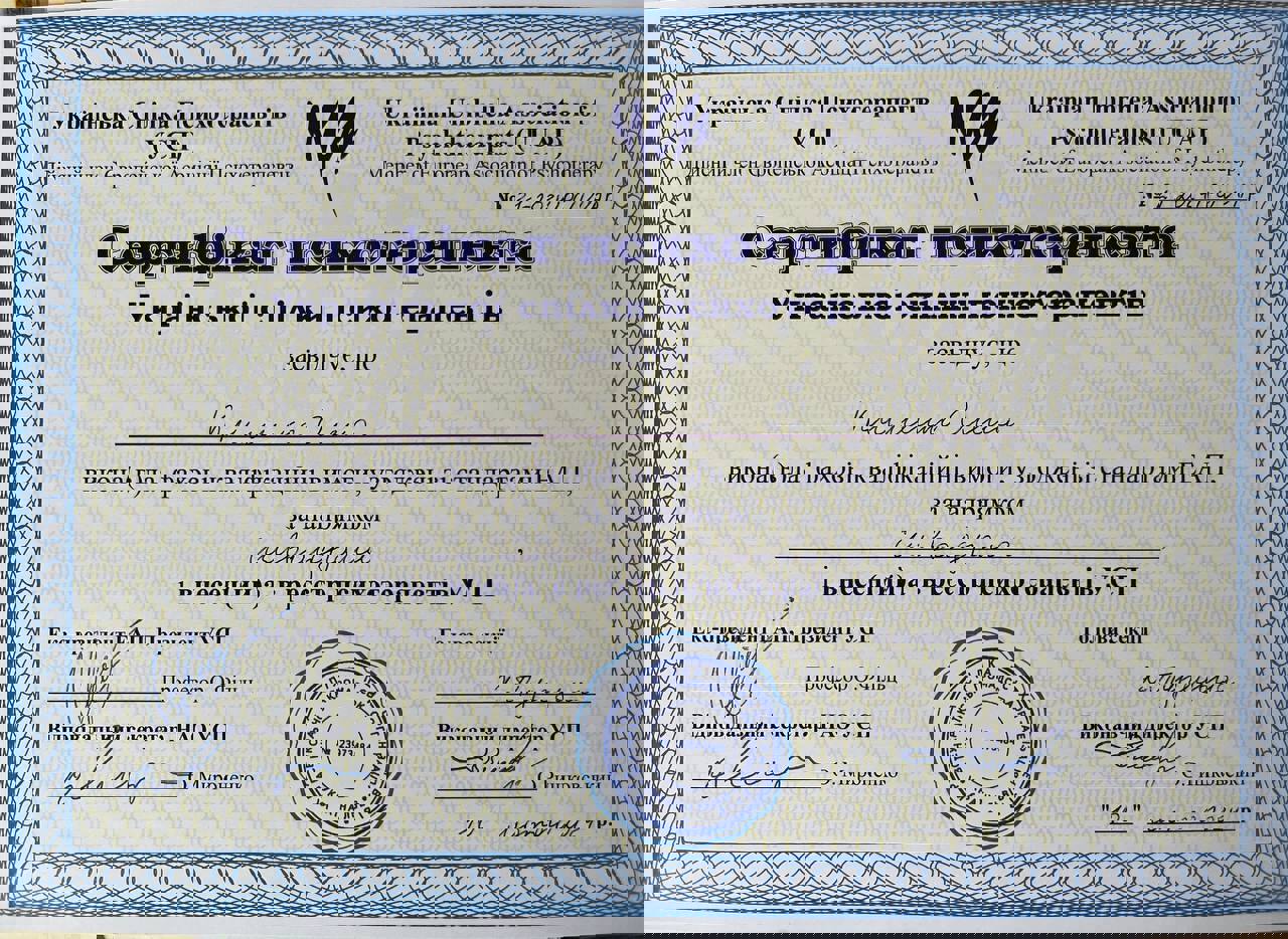 Сертификаты: