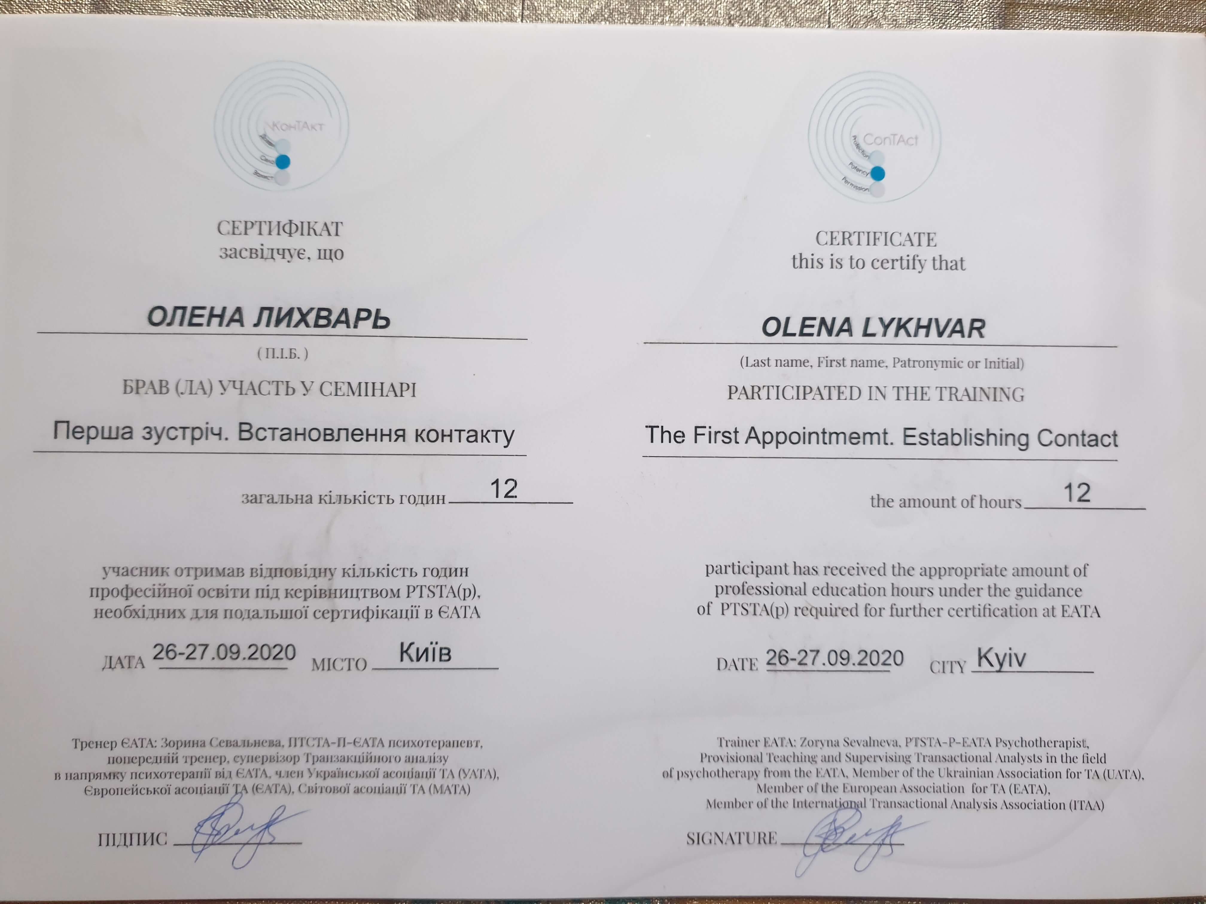 Психотерапевт направлений «транзактный анализ», «нейролингвистическое программирование»; работаю с расстройствами пищевого поведения.