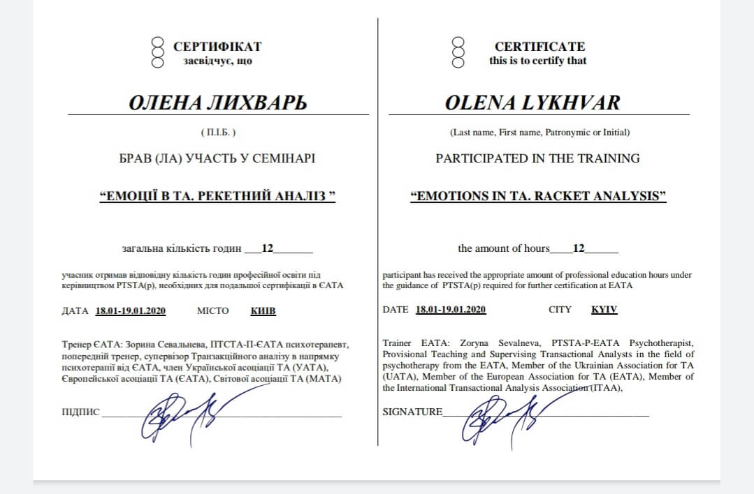 Мои личные изменения вдохновили и определили выбор профессии, я прошла длительное обучение и стала профессиональным психотерапевтом.