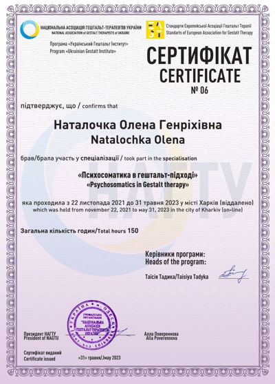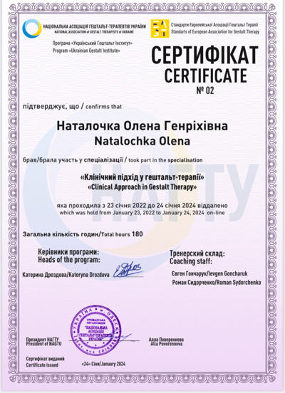Психотерапия в гештальт- подходе, 2я ступень во Всеукраинском обществе психологов, практикующих гештальт -подход