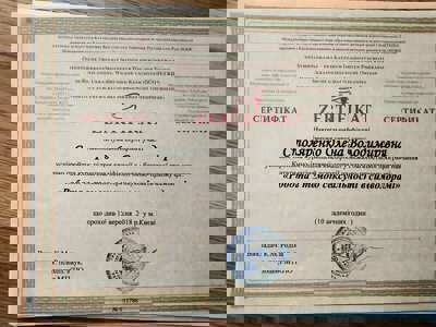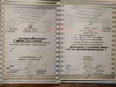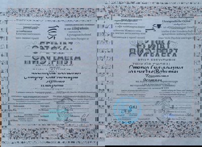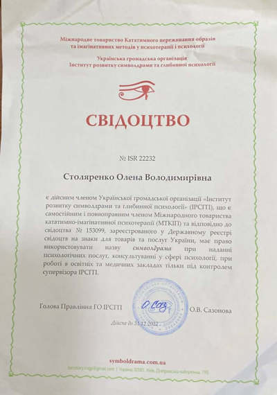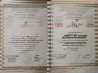 КНУ им.Т.Шевченка-психолог, институт развития Символдрамыи глубинной психологии- кандидат в психотерапевты по методу Символдрама.