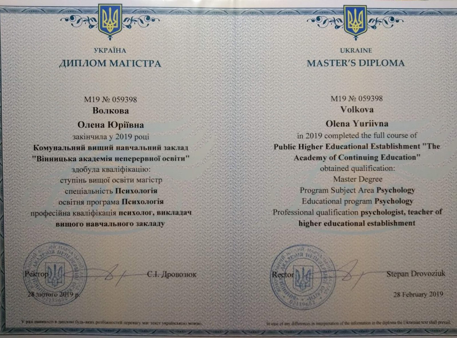 Вінницька академія неперервної освіти, психолог, викладач ВНЗ