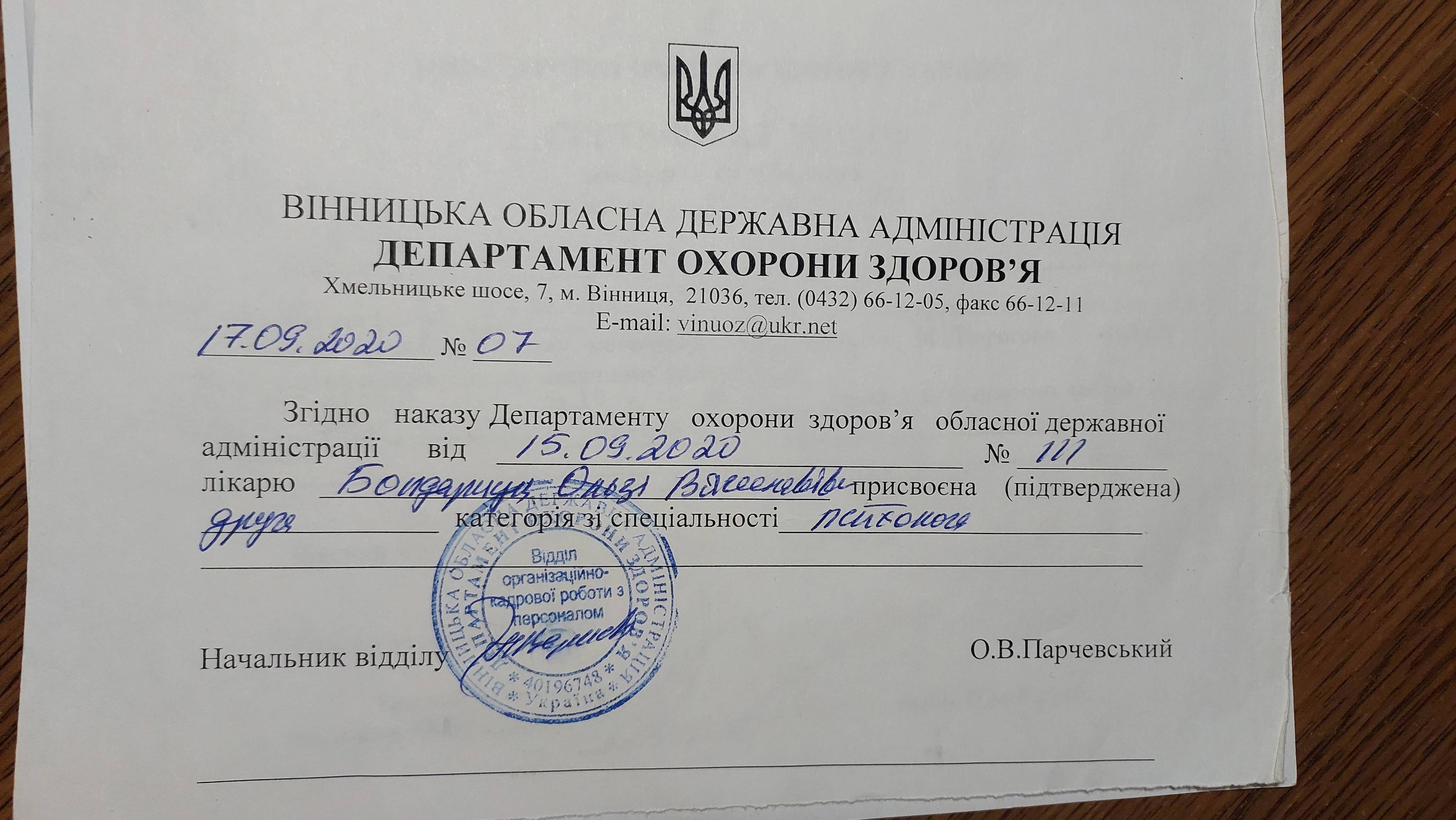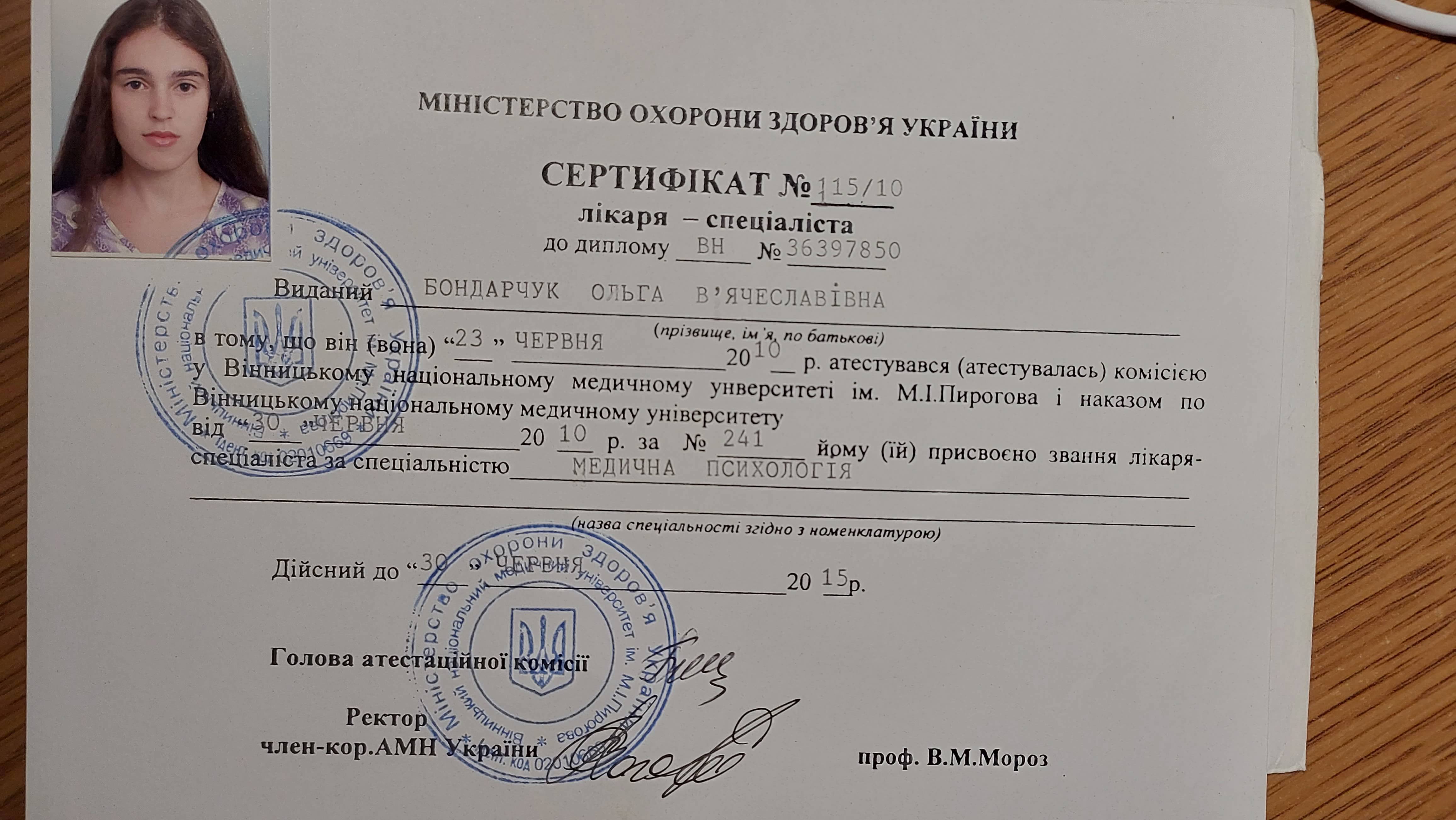 Винницкий национальный медицинский университет, факультет медицинской психологии.