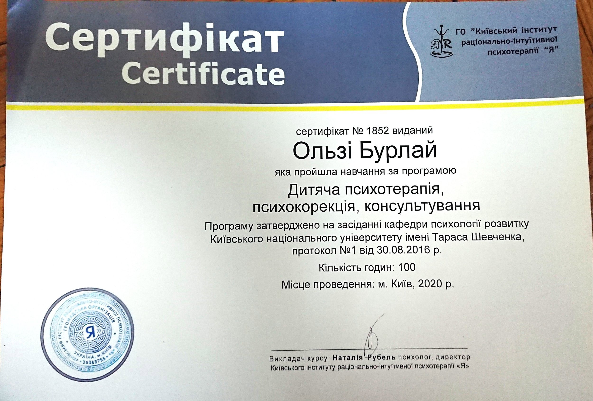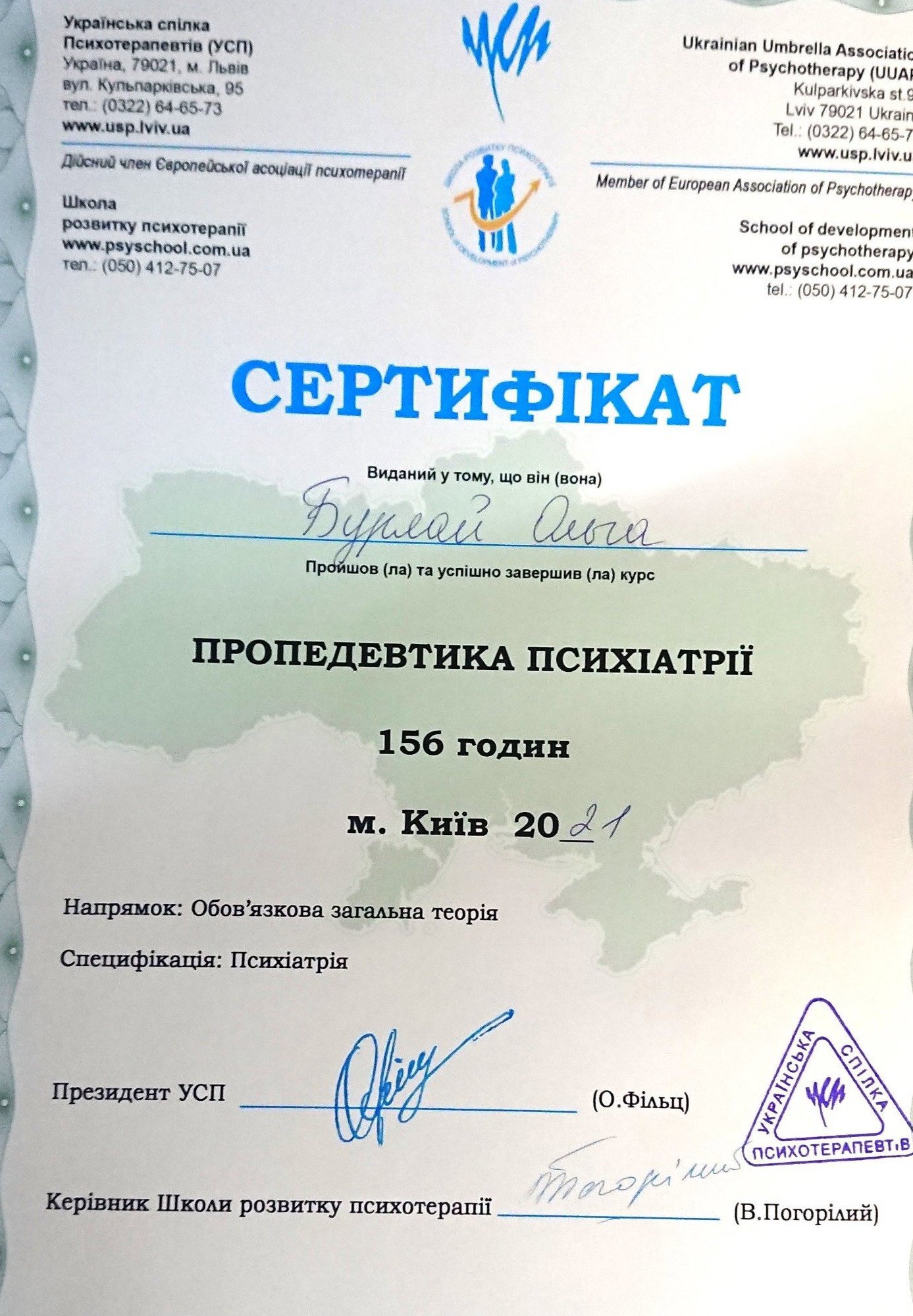 • Обучение в методе интерперсональной психотерапии (современный психоанализ) прошла в Институте консультирования и психотерапии при Ассоциации психологов Украины.