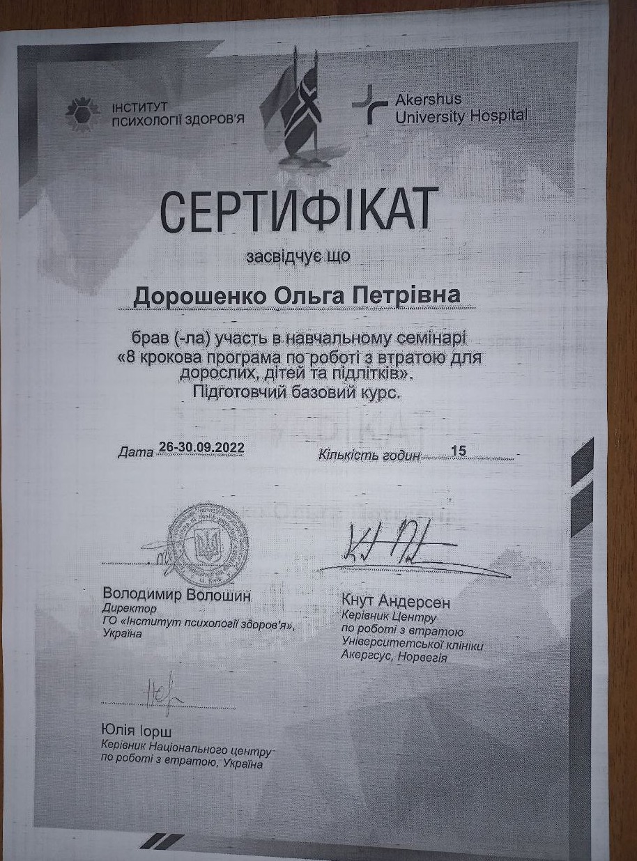 Институт психологии здоровья. "8 шаговая программа по работе с потерей для взрослых, детей и подростков" 15ч, 2022г.