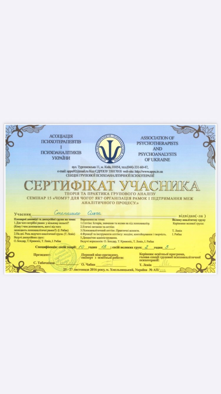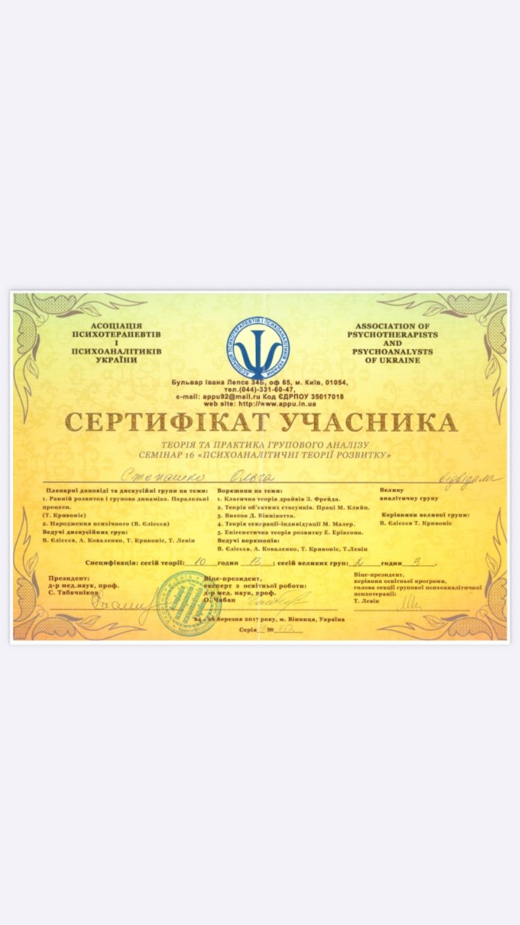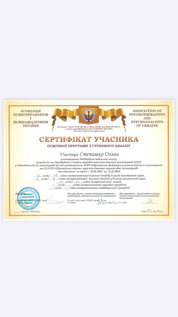 АСОЦІАЦІЯ ПСИХОТЕРАПЕВТІВ ПСИХОАНАЛІТИКІВ УКРАЇНИ