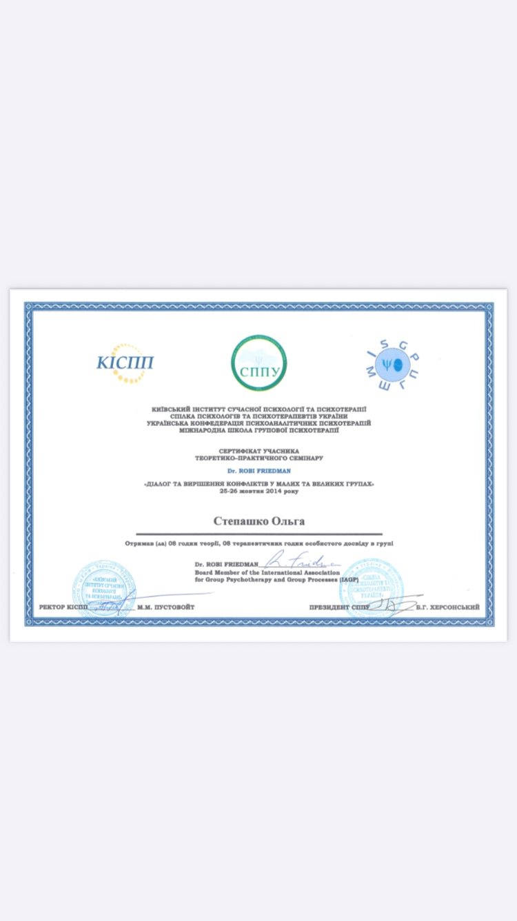 Киевский институт современной психологии и психотерапии. Теория и практика групповой психоаналитической психотерапии. Аналитическая психология. Реляционный подход в психоанализе.