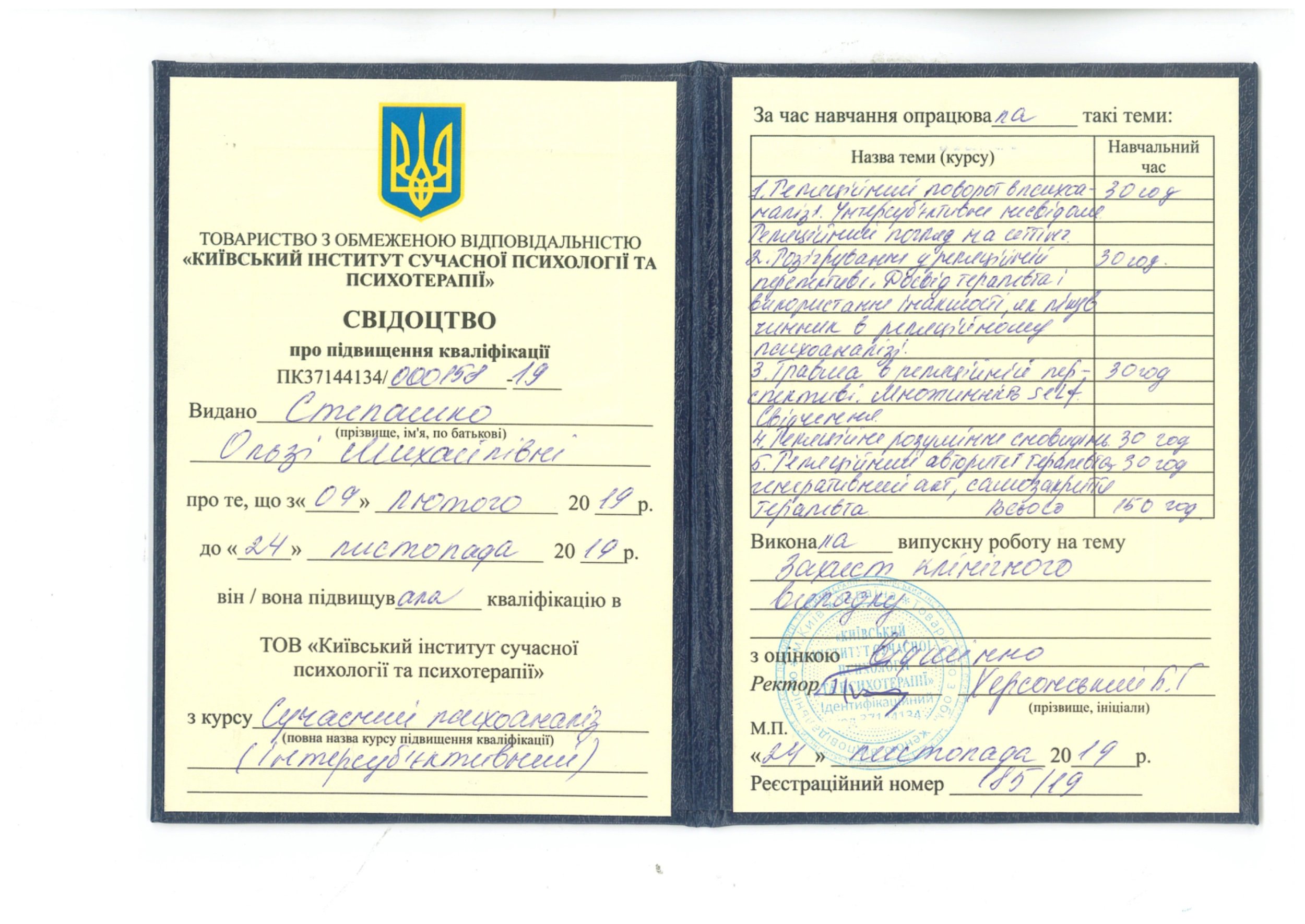 ТОВ "Київський інститут сучасної психології та психотерапії"