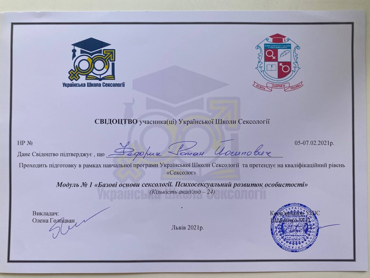 Институт сексологии и сексуального здоровья для предоставления сексологического образования и развития сексологии в Украине с 2021г.