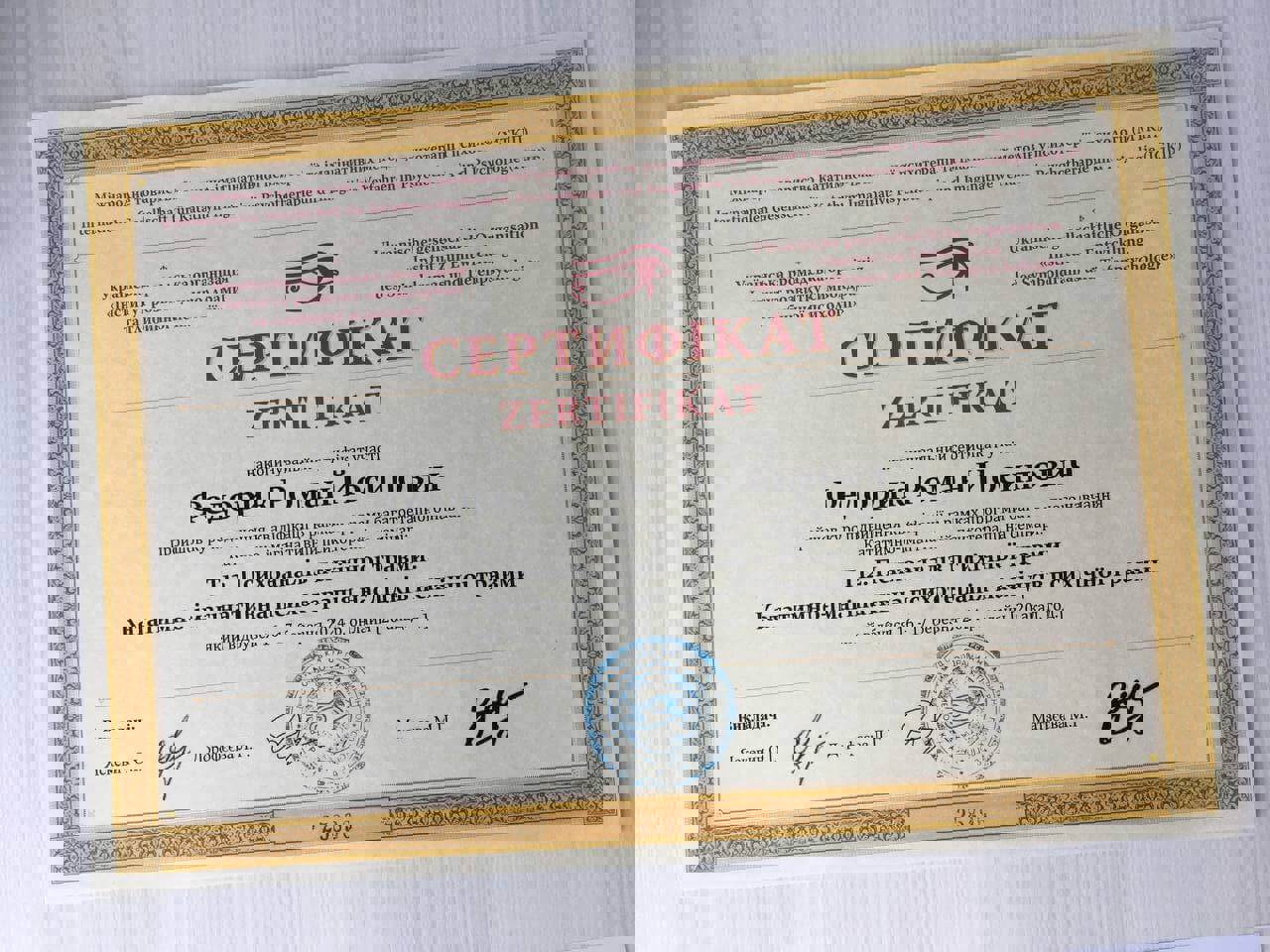 Сертификаты: