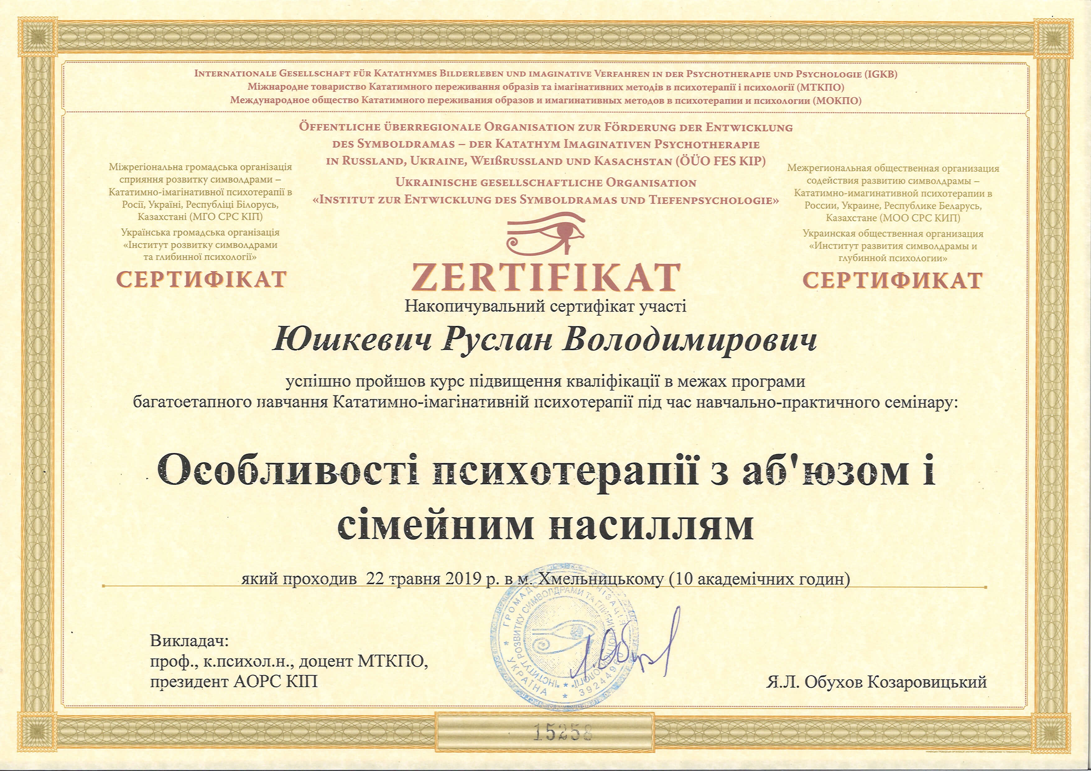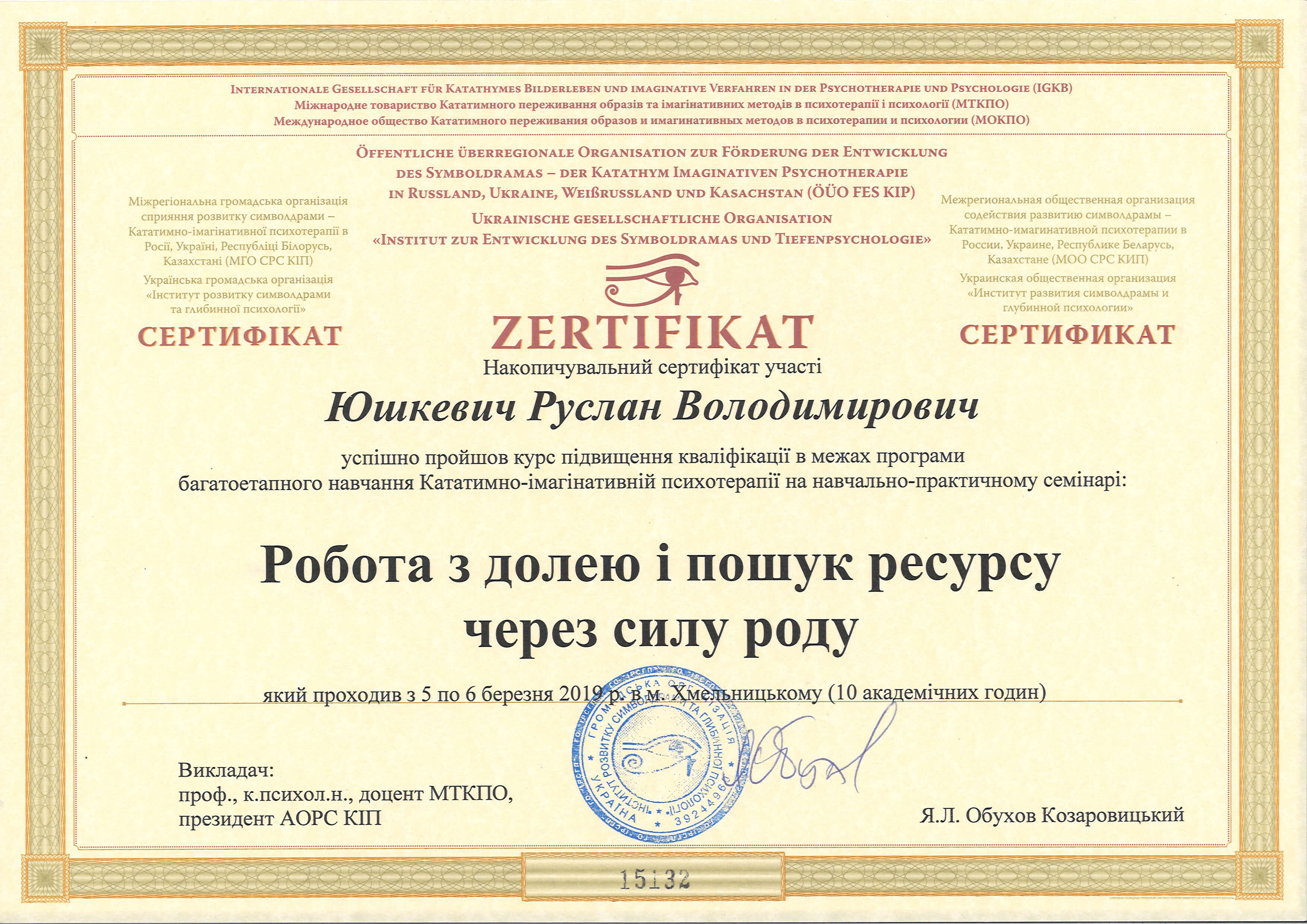 Я практикующий психолог по методу Символдрамы. Член Української Спільки Психотерапевтів, действительный член Інституту Розвитку Символдрами та Глибинної Психології.